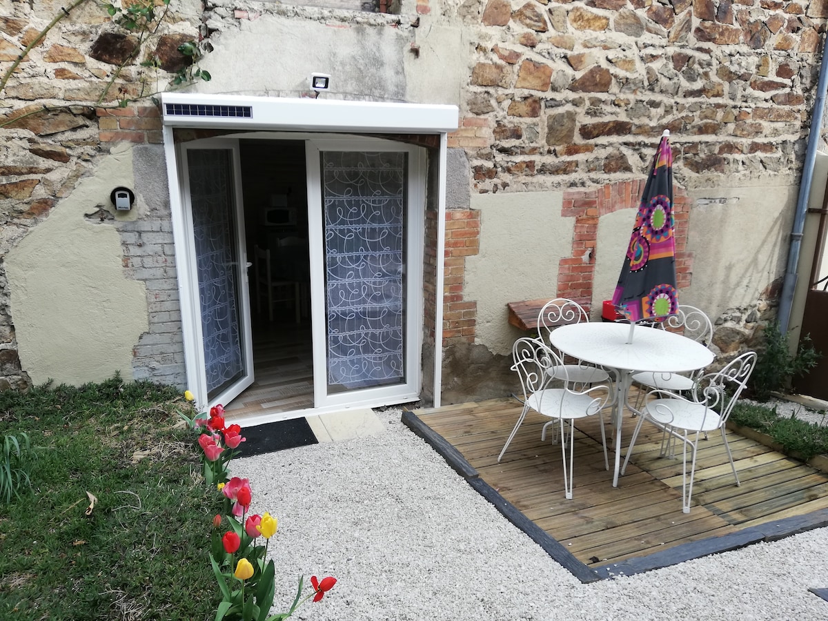 Logement entier pittoresque en bois de 25 m², tout équipé avec terrasse privative, donnant sur une cour clôturée et commune avec le propriétaire des lieux, ornée d'un gros cerisier. Idéalement située entre les deux parcs régionaux des volcans d'Auvergne et du Livradois-Forez, à 5 km de l'A75 ou de la gare SNCF d'Issoire.