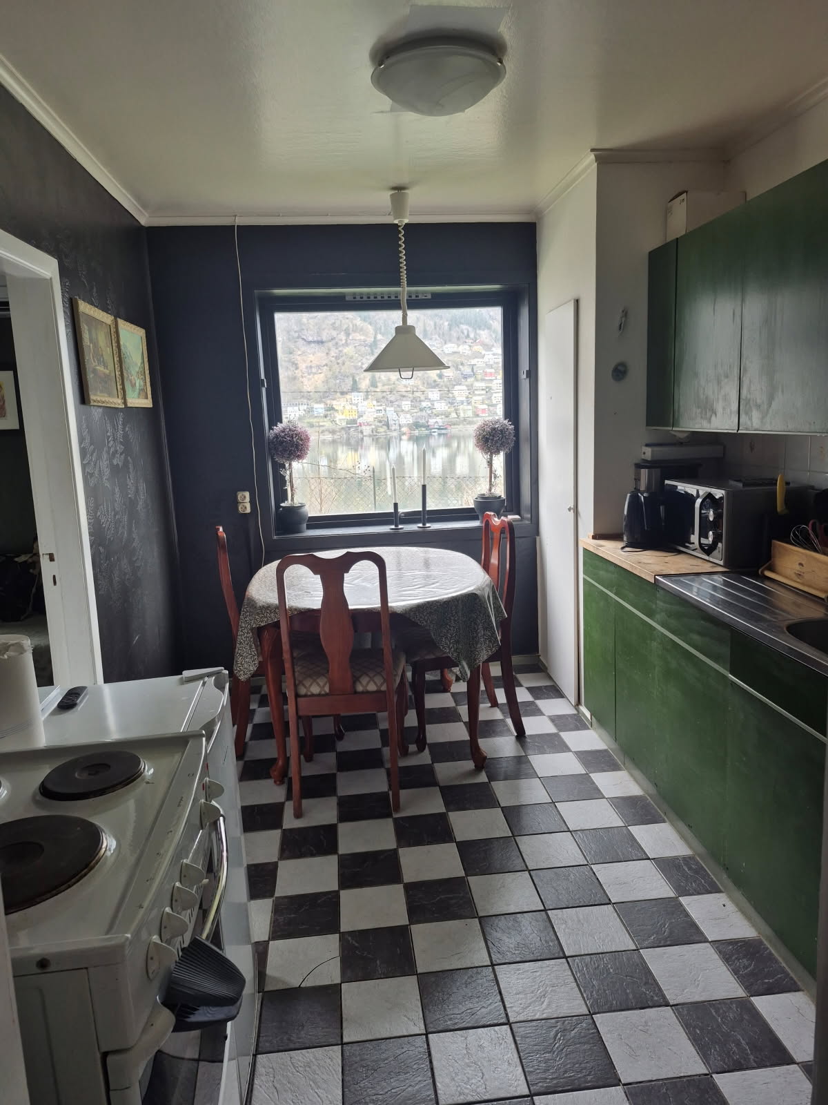 You have a private 'one room and kitchen' apartment with separate entrance. From the bedroom window you can see mountain, a small waterfall and the fjord. The house is old, with a newly renovated bathroom with heated floor. Patio in the garden. Use with other guests. One kingsize bed.