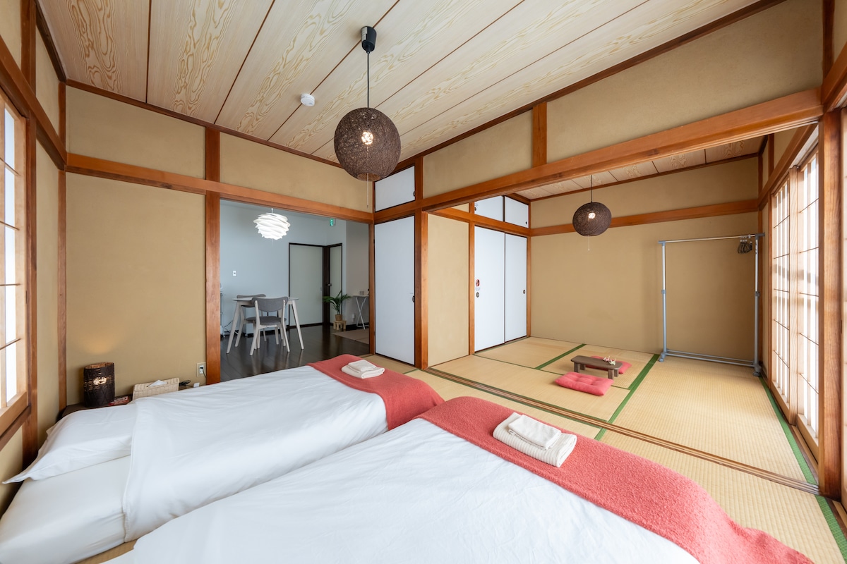 A renovated traditional row house in a retro neighborhood. Shops, bakeries, boutiques, and studios are within walking distance, where you can enjoy local culture. A private sauna (swimwear required) is available by reservation. Free Wi-Fi and basic amenities are provided. Notes: ・Surrounded by nature, insects may appear. Spray provided. ・Narrow, sloped roads nearby. Drive carefully. ・A camera verifies identity and guest count. ・Café next door; staff may stay overnight. No parties after 11 PM.