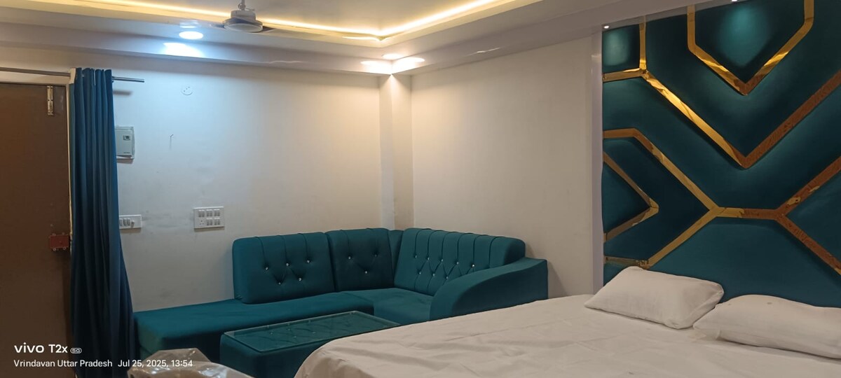 Mājīgs viss studijas tipa dzīvoklis, liela vannasistaba, maza divguļamā gulta, dīvāngulta, neliela virtuve, gīzers, gaisa kondicionētājs, mācību/ēdamgalds utt., lai dzīvoklī baudītu mieru, mīlestību un prieku. Īsa pastaiga līdz pārtikas precēm, restorāniem un Desi Gau Shala 15 līdz 19 minūšu 🛺 brauciens, lai nokļūtu galvenajos tempļos, tostarp Prem Mandir, Bankey Bihari, Premanand Baba Ashram, Iskcon un Yamuna ji. 30 minūtes, lai sasniegtu Radha Kund, Govardhan un Barsana. 3 minūšu brauciena attālumā līdz Agra-Delhi šosejai. Vietējais personu apliecinošais dokuments nav pieņemts, minimālais vecums ir 21 gads