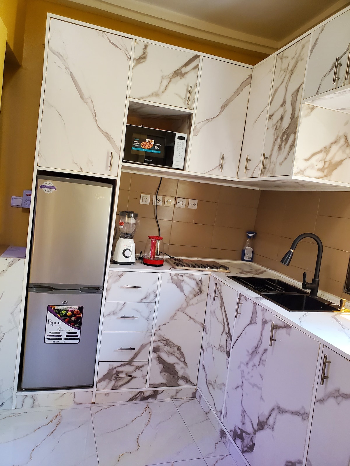 Šis elegantais mājoklis atrodas Lama-Kpédah, 5 km attālumā no Karas centra, un piedāvā unikālu dzīves vidi, kas nodrošina komfortu, mūsdienīgumu un mieru, lai jūs varētu baudīt mierpilnu un drošu uzturēšanos. MĒBEĻOTS 70 m2 DZĪVOKLIS Dzīvojamā istaba Ēdamzona Pievienots 65 collu plakanā ekrāna televizors 01 liela gulta (190 x 210) 01 divvietīgs drēbju skapis 01 Kombinētā plīts (gāzes kamīni un indukcijas plīts virsmas) Augstas klases virtuves piederumi un ēdamrīki 01 210 litru ledusskapis