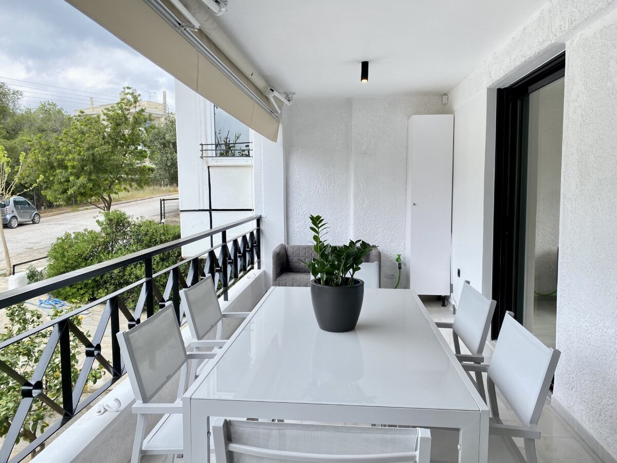 Laipni lūdzam mūsu jaunuzceltajā mājā, kurā izīrējam atsevišķu luksusa 60 kvadrātmetru dzīvokli. Tas atrodas klusā apkaimē, ar dārzu un koplietošanas baseinu. Ieeja dzīvoklī ir privāta viesiem. Māja atrodas 3 minūšu brauciena attālumā no pludmales un 6 minūšu brauciena attālumā no centra. Ar automašīnu attālums no lidostas ir 17 minūtes un 5 minūtes no Rafinas ostas. Artemidas apkaime ir iecienīta ūdenssporta vieta (SUP, vējdēļošana, kaitošana).