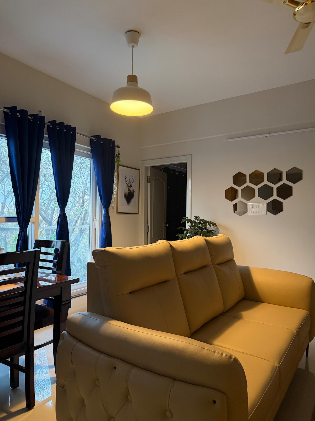 Šis pārdomāti iekārtotais 1BHK, kas ir ideāli piemērots darbam un atpūtai, piedāvā mierpilnu atpūtu pašā pilsētas sirdī. Dažu minūšu attālumā no Zepto, Vaishnavi Tech Park, Wipro un RGA Tech Park, tā ir ideāli piemērota darījumu braucieniem vai ilgākām uzturēšanās reizēm. Atpūtieties siltā, estētiskā interjerā, baudiet klusas vakariņas sveču gaismā vai atpūtieties privātā balkonā. Šis mājoklis, kas atrodas netālu no Byg Brewski, Bier Library un Sarjapur Social, apvieno komfortu, mieru un ērtumu, kas ir ideāli piemērots pāriem, individuāliem ceļotājiem un lēnai pilsētas izpētei.
