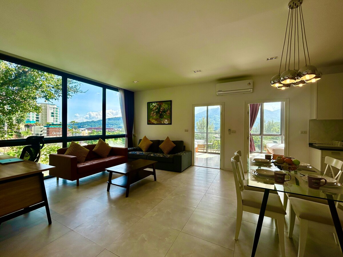 *SUPERSAIMNIEKS!*- Iepazīstieties ar atsauksmēm un bildēm, lai redzētu šī daudzdzīvokļu nama vērtību! Lai pārvietotos pa Patongu, nav nepieciešams motocikls/Tuk-Tuk! AUGSTA STĀVA PANORĀMAS SKATS UZ JŪRU un KALNIEM un PILSĒTU, 40 kvadrātmetru LUKSUSA dzīvoklis Patongas centrā! Ļoti tuvu BANGLA Rd, PATONGAS PLUDMALEI, Banzaan TIRGUM, CENTRĀLAJAM un Jungceylon TIRDZNIECĪBAS centram. Liels baseins, privāts HS Wi-Fi, ērta gulta! Motociklu noma, veļas mazgātava, masāža/spa, 100 restorāni/bāri tieši ārpus daudzdzīvokļu mājas. Bez papildu maksas par elektrību vai ūdeni. Viegli taksometram atrast manu dzīvokli