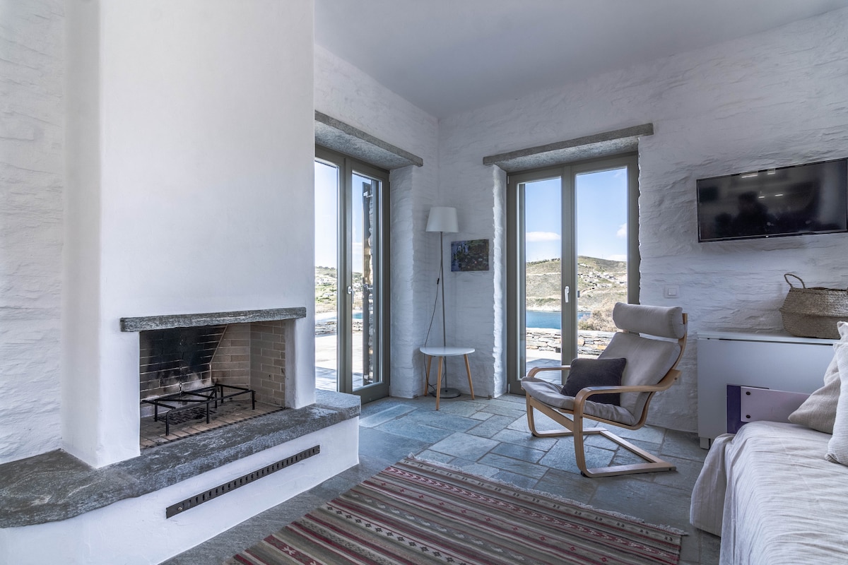Māja atrodas tikai 2 km no Kea ostas. Tas apvieno mieru ar socializāciju. Skats no mājas sola skaistāko saulrietu katru dienu. Tas ir ideāli piemērots ne tikai ģimenēm, bet arī pāriem vai draugu grupai. Tā nes labu enerģiju tiem, kuri ir dzīvojuši, un garantē ērtu un patīkamu izmitināšanu, kamēr jūs veicat savas aktivitātes uz salas