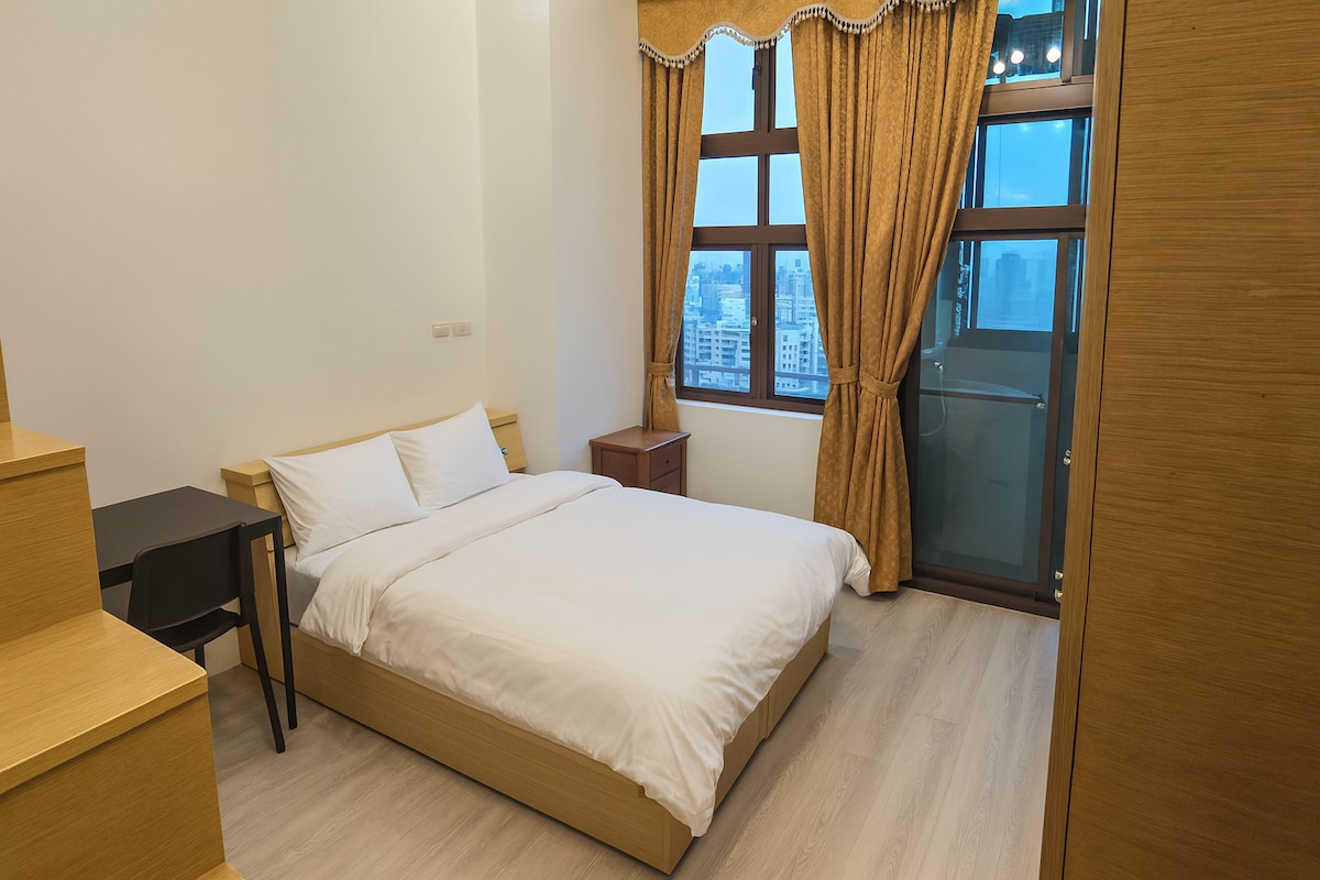 Mūsu stilīgajā dzīvoklī ir lieli logi ar lielisku apgaismojumu. Atrodas Taipejas izcilajā vietā; galvenie apskates objekti, tieša piekļuve Taipejas galvenajai stacijai! Dzīvokļa platība ir 38 ping, kas ir aptuveni 125 kvadrātmetri jeb 1335 kvadrātpēdas; tajā ir 2 vannasistabas un atvērta virtuve/ēdamistaba. Šis dzīvoklis ir aprīkots ar visām ērtībām ir glīta dizaina un mēbelēts dzīvoklis ar divām guļamistabām (viena ar King izmēra gultām un divām "queen" izmēra gultām otrā istabā), divām pilnībā aprīkotām vannasistabām, plašu dzīvojamo istabu atpūtai.