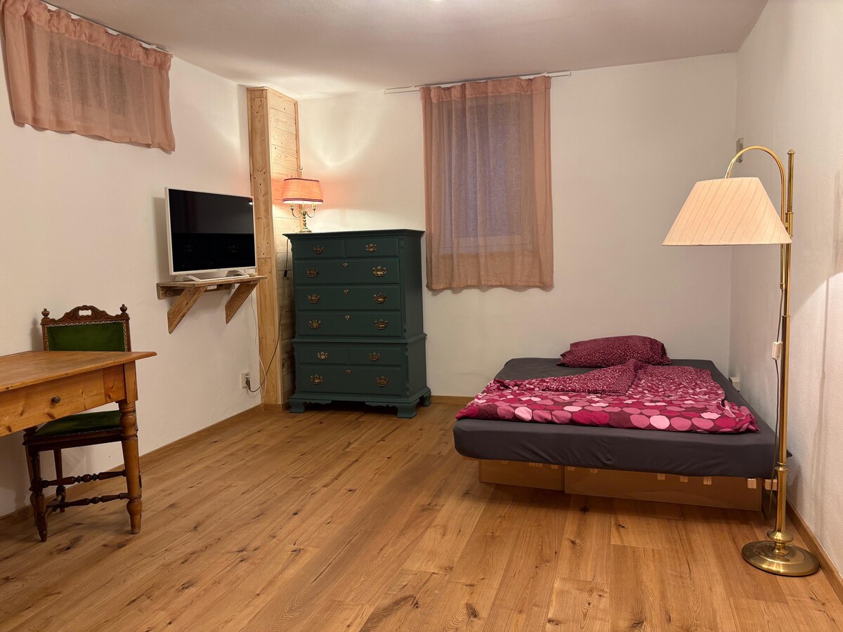 Skaista, gaiša, slēgta un moderna, 1-istabas aplikācija. (pagrabs). Ieeja sep. Patīkami vēss, kad apkurināts, ziemā apkurināms. atvērta viesistaba/guļamistaba, ledusskapis, virtuve (bez cepeškrāsns), vannas istaba (duša, fēns), dīvāns, kaste ar atsperu gultu, bistro galds kopā ar bāra taburetēm, garderobes skapji un jauns Smart TV Mūsu moto ir ideāli piemērots tirdzniecības gadatirgus viesiem un īsiem atpūtniekiem, kas ierodas un jūtas labi. Vieta laukos īpašumā viesiem. Piķis dir. pie mājas Mēs esam nesarežģīti un izpalīdzīgi.