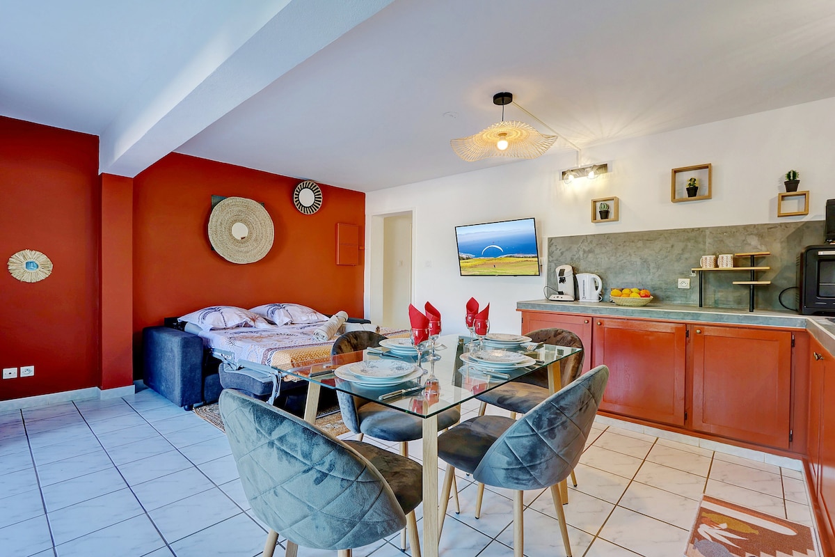 Pavadiet brīvdienas izcilā vidē ar skaistiem saulrietiem un panorāmas skatu uz okeānu. Izbaudiet La Réunion šajā augstākās klases studijā 27 m2 platībā, kas atjaunota 2019. gadā, mazā dzīvesvietā, kas ir patīkama, klusa un droša. Ideāls mājoklis vienai personai, pārim vai jauniem vecākiem. Mājīgs, ērts, gaisa kondicionēts, mierīgā vidē... tas ir ideāli piemērots, lai uzturētos mīlestībā un atstātu neparastu darba ritmu.