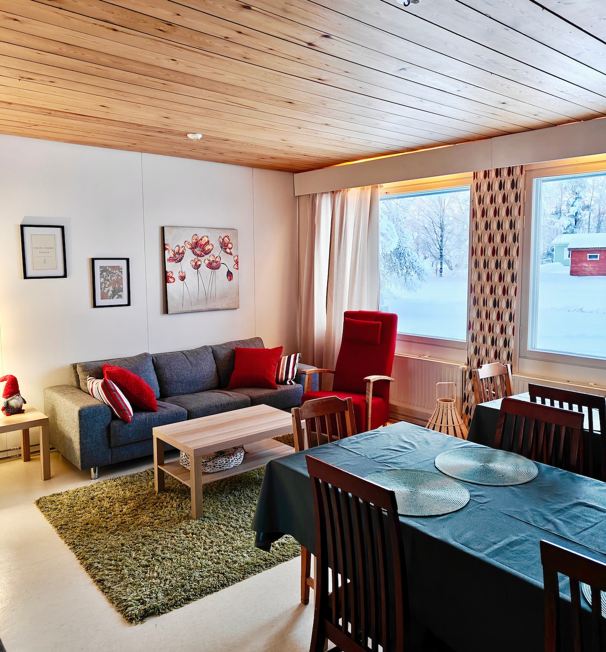 Mājīgs dzīvoklis Keminmas vidū. Tuvumā ir pārtikas veikals (100 m), restorāns/krogs, hamburgeru bārs/picērija. 100 m līdz upes krastam, jūs varat peldēt vasarā vai vienkārši apbrīnot ainavu, ziemā jūs varat staigāt un slēpot pa ledu, kas ir vieta, kur doties lejup no kalna bērniem. 8 km līdz Kemi un 18 km līdz Tornio un Haparanda, Sverige. Ziemassvētku vecīša ciemats Rovaniemi 100 km, Kemi sniega pils 11 km, ledlauzis Sampo 10 km.