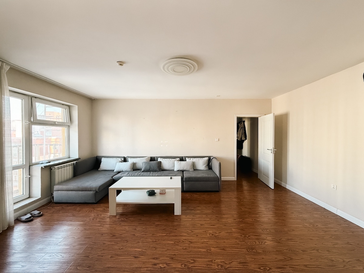 You'll have a great time at this comfortable place to stay. Located right next to the Naadam Center, a beautiful, sunny 2-bedroom apartment perfect for visitors and long terms guests alike. Perfect location, walking distance to almost all attractions in Ulaanbaatar. 20 min walk from the Sukhbaatar Square and the Mongolian Parliament building, a 10 min walk from the Bogd Khaan Palace. Countless restaurants and shops steps away. A short 2 minute walk to Naadam Center for shopping and nightlife.
