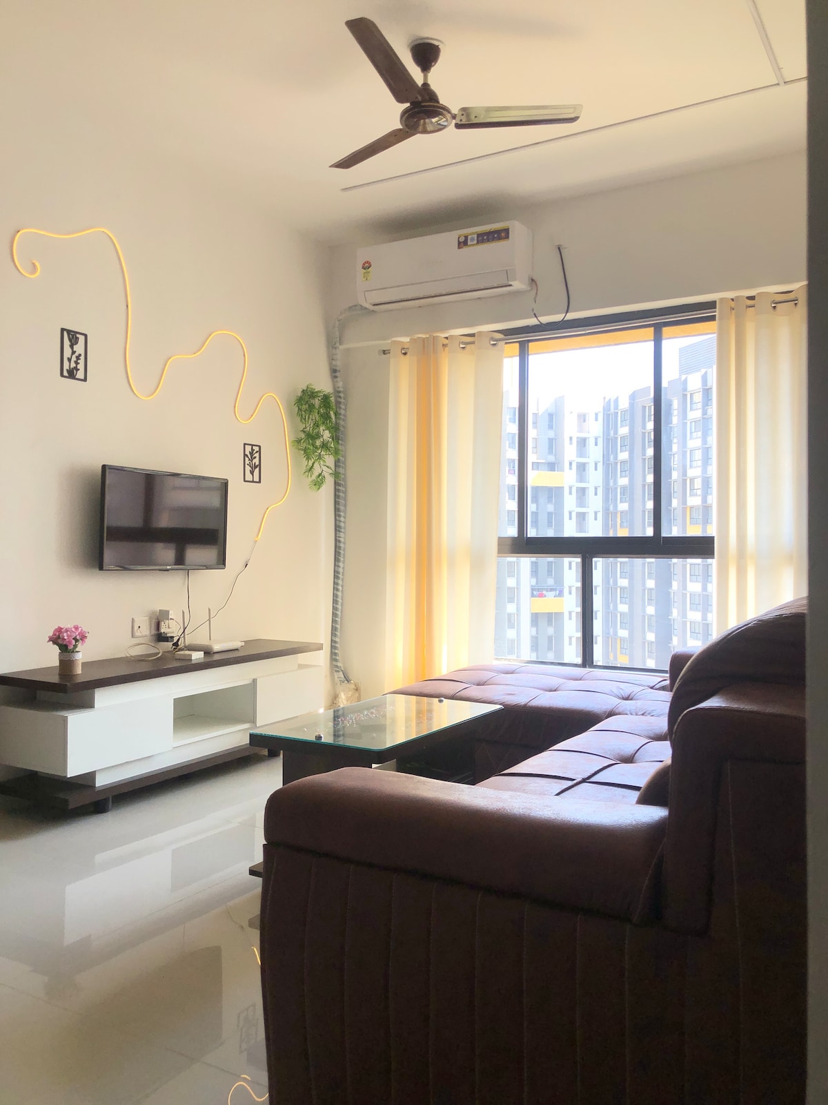 Izbaudiet greznību augstceltnes dzīvoklī ar skatu uz kalniem, kur elegance satiekas ar mieru. Izbaudiet plašu dzīvojamo zonu ar panorāmas logiem, no kuriem paveras elpu aizraujošs skats uz Sahyadri grēdām. Ienirstiet atpūtā ar mirdzošu peldbaseinu un tuvumā esošo golfa laukumu. Atpūtieties iekštelpās ar spēļu istabu ar baseinu, karromu un šahu. Esiet aktīvs futzāla laukumā. Pats galvenais - atrodiet mieru šajā mierīgajā atpūtas vietā, kur katrs mirklis apvieno komfortu un dabas skaistumu.