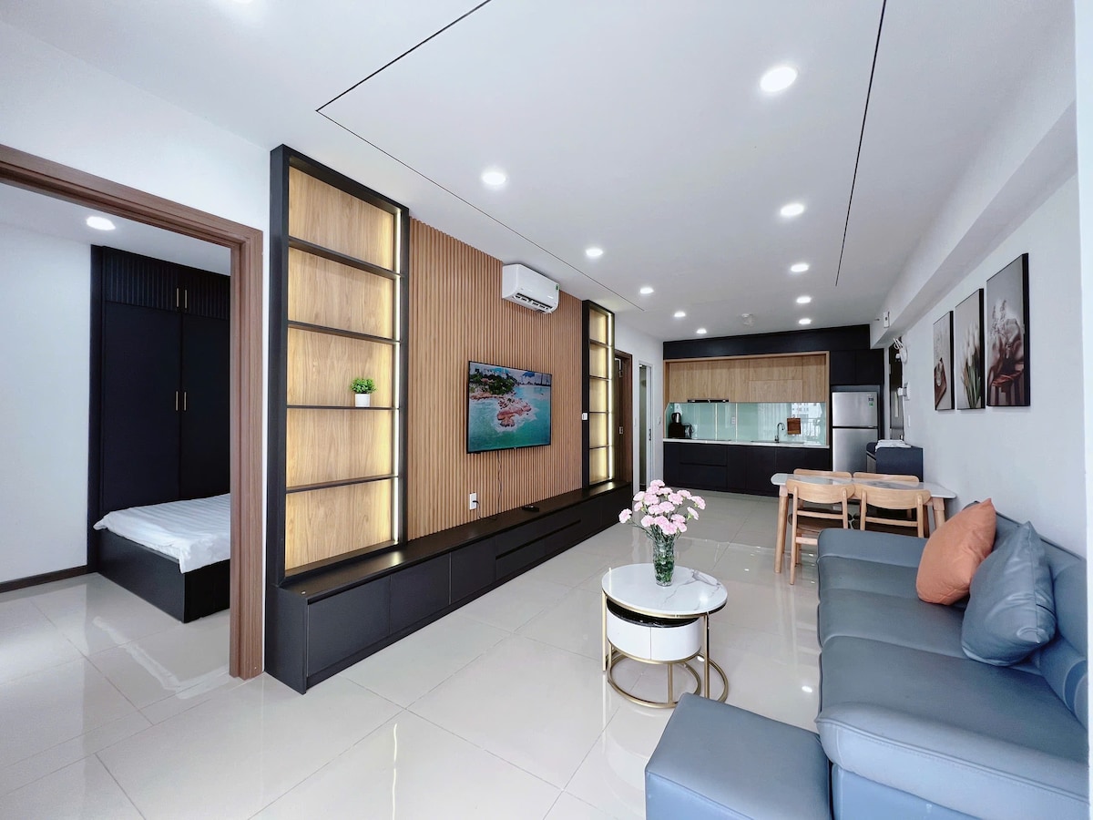 Laipni lūdzam mūsu Sunnyhomes ! Ar ideālu atrašanās vietu : 2 minūšu gājiena attālumā no Tran Phu ceļa un pludmales. 5 minūšu gājiena attālumā no Tram Hương Tower (Agarwood Tower) un nakts tirgus! 2 minūšu gājiens līdz Vincome centram (tirgum), Lotte centram, Xóm Mới tirgum! Mūsu mājoklis atrodas Tuiblue ēkā/5 zvaigžņu viesnīcā) ar ērtu, mājīgu un lielu studijas tipa dzīvokli (virs 55 m2)!Šis mājoklis ir piemērots pāriem, atsevišķiem piedzīvojumu meklētājiem, darījumu ceļotājiem, cilvēku grupām un ģimenēm.!!