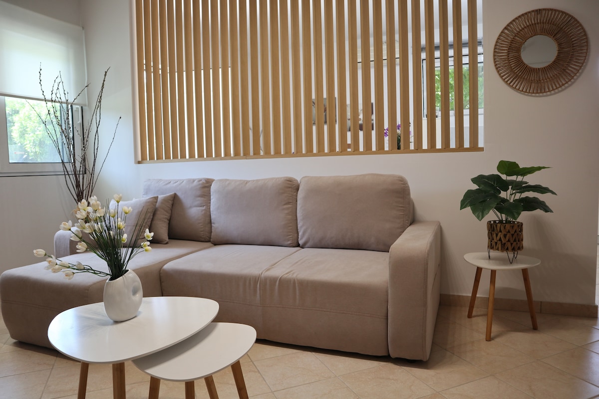 Kick back and relax in this calm, stylish space. Country house fully renovated, 100 sq. m. with 267 sq. m. balconies and garden, on the edge of the beautiful and quiet village of Mulki, 3.5 km from the sea and the beautiful beaches, and 1.8 km from the archaeological site and museum of Ancient Sikyon. This residence is perfect for families and couples. 2 Fully equipped kitchens, 2 fully equipped bathrooms, 2 superior beds for two, 2 single beds and sofa bed for two, high speed WiFi, Smart tv..