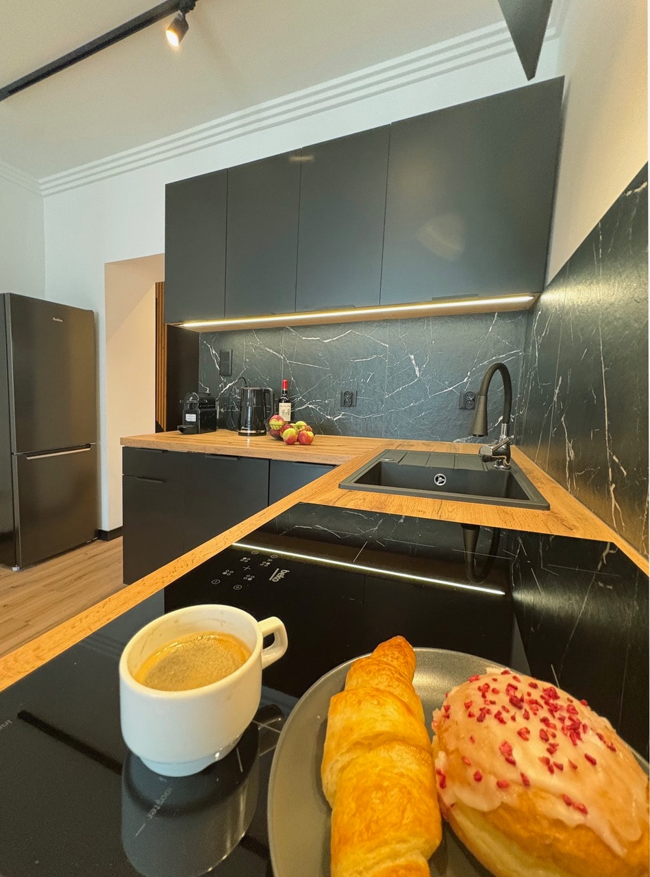 Stilīgs, tikko izremontēts dzīvoklis, kas iekārtots elegantā melnbaltā tonī. Ideāla izvēle pilsētas pārtraukumiem, darījumu braucienam vai ērtai bāzei, lai izpētītu Świętokrzyskie kalnus. Viss nepieciešamais - kultūra, gastronomija, iepirkšanās un izklaide - atrodas tepat aiz durvīm. Iekšpusē jūs gaida: - ērta divguļamā gulta, ideāli piemērota pāriem, - divvietīga dīvāngulta, - pilnībā aprīkota minivirtuve (kafijas automāts, ledusskapis, plīts, trauku komplekts) - viedtelevīzija ar Wi-Fi