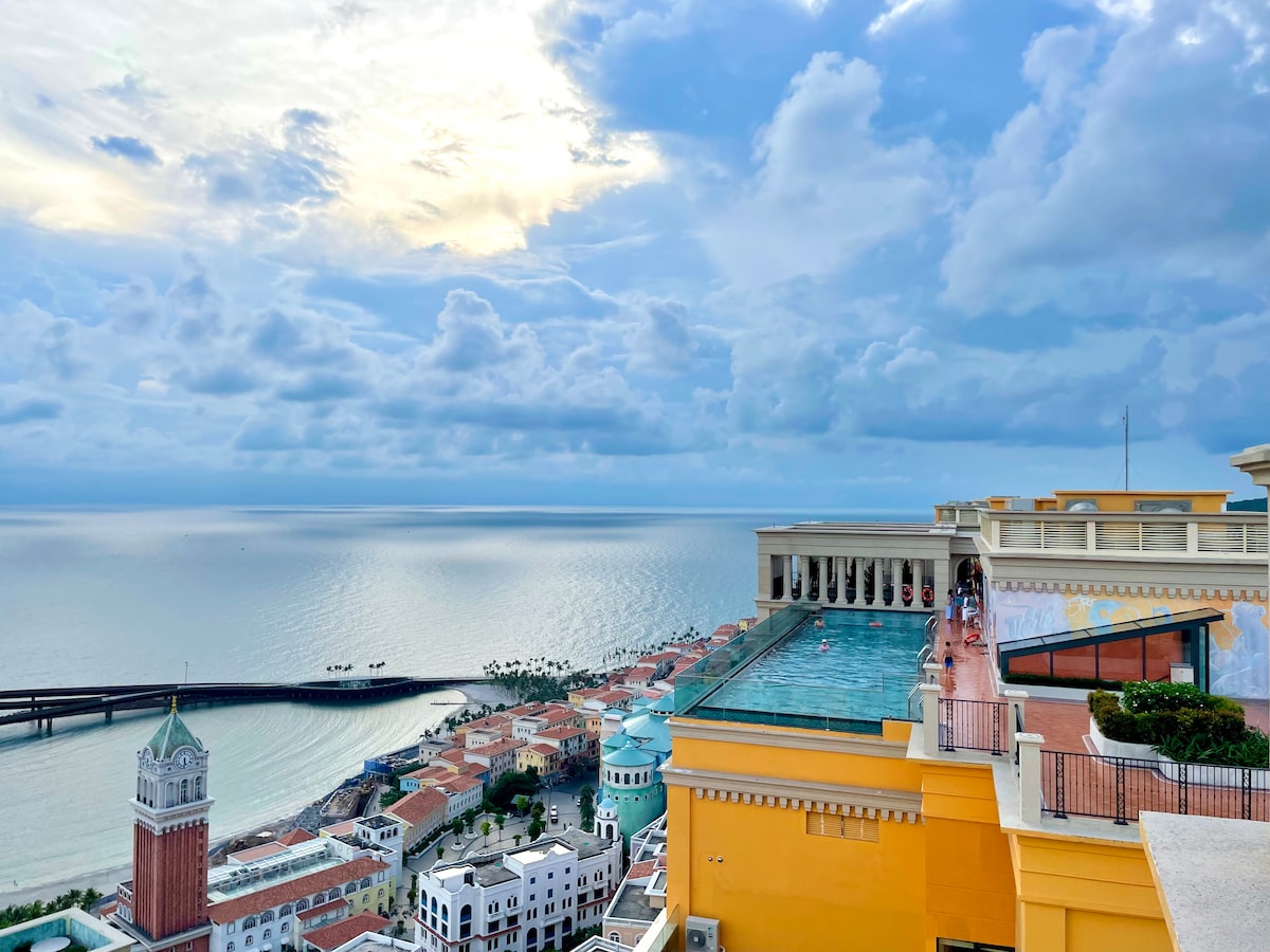 Atpūtieties kopā ar visu ģimeni šajā mierīgajā mājoklī. - Kiss Bridge tiešais skats uz dzīvokli, ūdens mūzikas skatuve, uguņošana daudzas dienas nedēļā, panorāmas skats uz Sunset Town - Wi-Fi, televizors - Virtuve, ledusskapis, mikroviļņu krāsns, trauki, katls un katls - Veļas mašīna, drēbju auklas - Balkons ar skatu uz jūru - Infinity peldbaseins - Bezmaksas sporta zāle - Āra atpūtas telpa - Bezmaksas autostāvvieta - Lielveikals (tieši pa zāli) - Daudzu restorānu, kafejnīcu tuvumā. - Pašbraucošs motocikls (par maksu). - Ekskursiju pakalpojumi uz salas (par maksu)