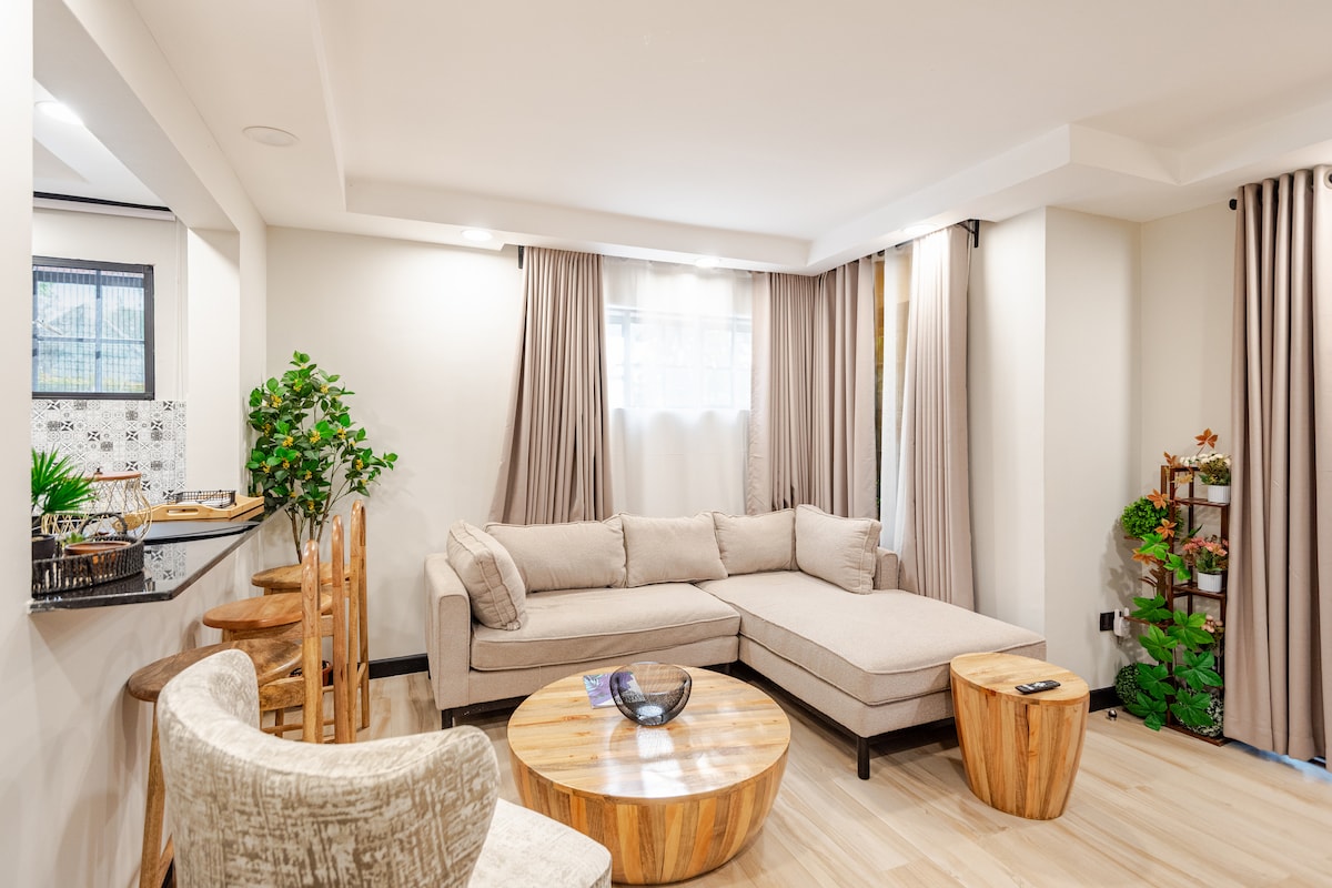 Welcome to your peaceful retreat—a spacious haven designed to help you forget your worries and fully relax. With modern furnishings, natural light, and thoughtful touches throughout, our space offers everything you need for a comfortable stay, whether you're cooking in the well-equipped kitchen, resting in the cozy bedroom, or unwinding in the serene outdoor area. Come recharge and make lasting memories in a space crafted with your comfort in mind. Note : *Gym and pool paid separately*.