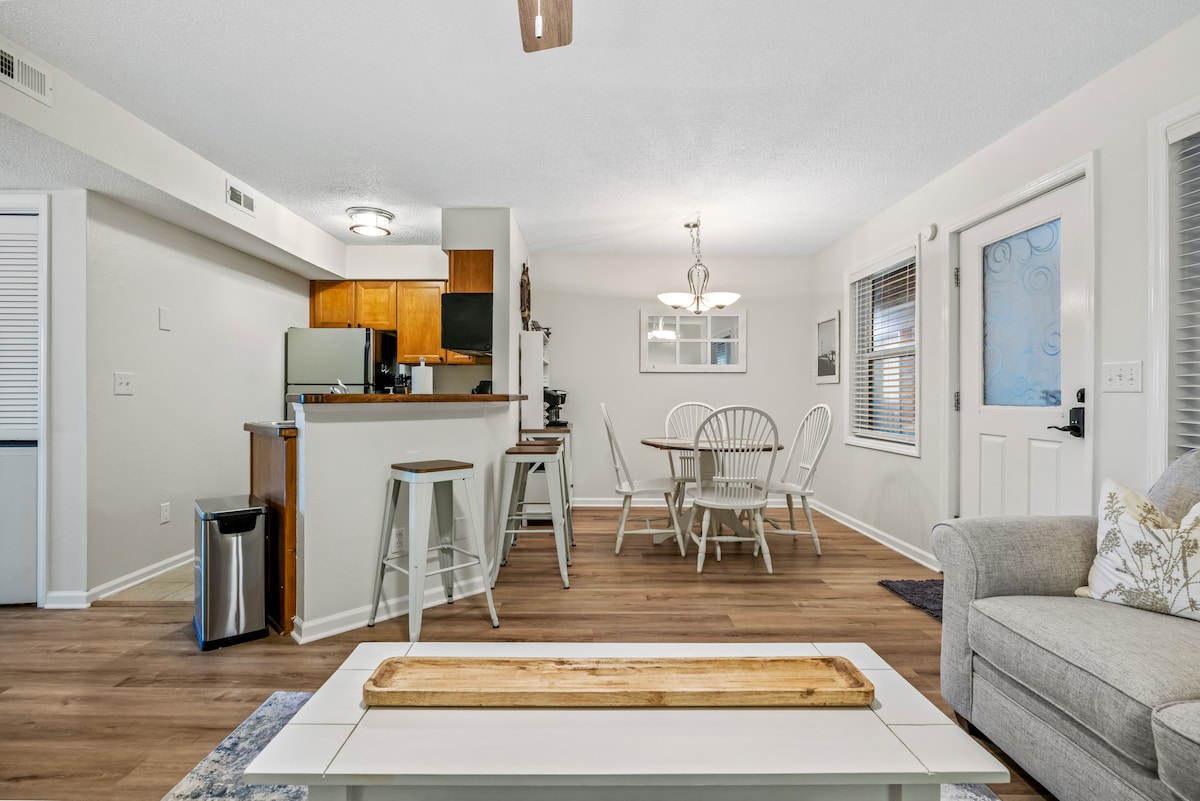 Šis mājīgais 1 guļamistabas dzīvoklis Sundune Village atrodas vienu kvartālu no pludmales ar skaistu skatu uz Brāļu Raitu memoriālu un kopienas baseinu. Šajā 3. stāva mājoklī var lepoties arī ar nelielu skatu uz okeānu un jaukiem saullēktiem. Mēs atrodamies pašā Kill Devil Hills centrā, viena kvartāla attālumā no Martina ielas pludmales. Tas ir viegls gājiens vai brauciens ar velosipēdu līdz Bonzer Shack, Food Dudes un daudziem citiem restorāniem un veikaliem. LŪDZU, BEZ MĀJDZĪVNIEKIEM! Tas ir piemērots pārim vai nelielai ģimenei.