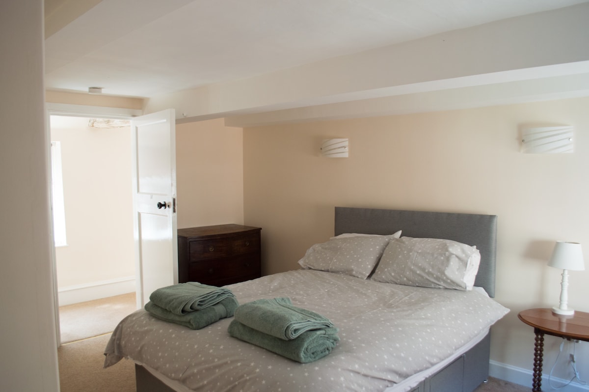 Self contained annexe with minimal cooking facilities - downstairs open plan kitchenette with microwave and hob, lounge area (smart TV), dining area. Upstairs in master bedroom king size bed, (smart TV) sloping attic roof - separate shower room with toilet and wash handbasin. Second bedroom (request booking please) single bed, sloping roof. Outside toilet and fridge if required. Welcome pack for your first breakfast. Kitchen facilities suitable for breakfast and light lunches.