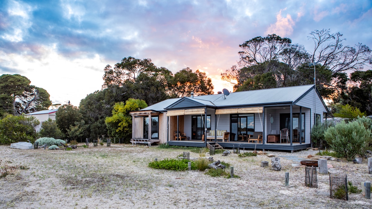 Laipni lūdzam Wallaby Beach House – jūsu norobežotajā piekrastes patvērumā! Tikai 30 m no neskartās Braunsbīčas, ko ieskauj vietējie krūmi ar satriecošu skatu uz ūdeni. Šis stilīgais mājoklis ar 3 guļamistabām (1 divguļamā gulta + 2 vienguļamās gultas) piedāvā pilnīgu privātumu, plašu terasi dzērieniem saulrieta laikā, gultasveļu un dvieļus, kā arī pilnīgu mieru. Vienīgā māja šajā KI pusē, kas iekļauta Lonely Planet un “52 labākajās nedēļas nogalēs Austrālijā”. ★ 15% atlaide nedēļu ilgām rezervācijām Rezervējiet tūlīt, lai baudītu neaizmirstamu un mierpilnu atpūtu Kenguru salā!
