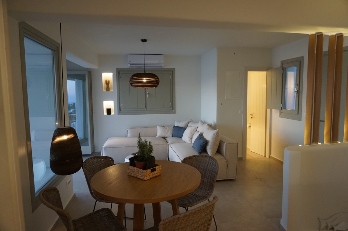 Naksas pilsētā, no kuras paveras satriecošs skats uz Egejas jūru, mēs piedāvājam viesiem ekskluzīvu relaksējošu piedzīvojumu. Viegli sasniedzams no salas slavenās PORTARA un Venēcijas pils. Mūsu filozofija ir piedāvāt augstākās klases viesmīlību kopā ar nepārspējamu privātumu. Daudz vairāk par mājokli mūsu luksusa apartamenti piedāvā izcilu komfortu apvienojumā ar elegances stilu un unikālu grieķu viesmīlību. Tās ir siltas, minimālas līnijas rada relaksējošu atmosfēru.