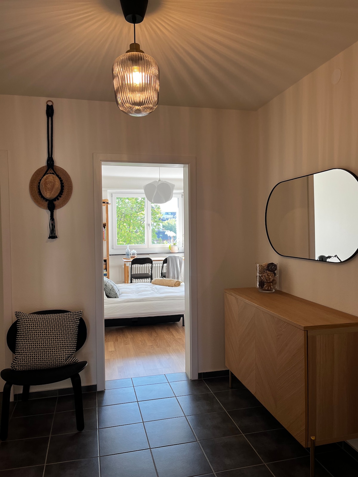 Die gemütliche Wohnung mit Doppelbett, Sofa und Schreibtisch liegt mitten im Messegebiet in einem ruhigen Hinterhof. Von hier aus sind es nur fünf Gehminuten bis zur Messe Basel, zum Musical Theater, oder zum Badischen Bahnhof. Die Buslinie 30 in die Innenstadt hält gleich um die Ecke. Unseren Gästen stehen zusätzlich ein Apple Computer, ein grosses TV-Gerät mit Netflix, eine Playstation 4 und superschnelles WiFi zur Verfügung. Keine Küche, kein Balkon und kein Wasserkocher vorhanden.