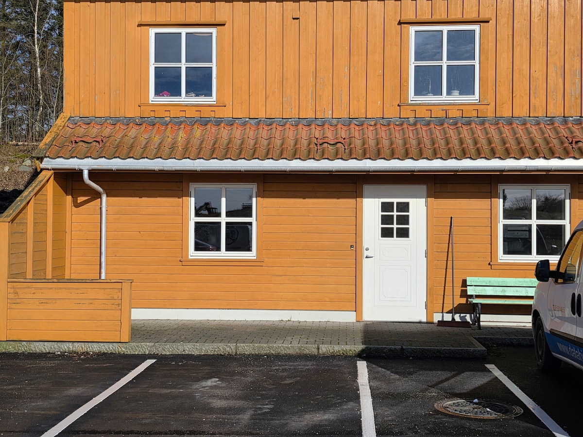43 m2 liels dzīvoklis ar guļvietām 6 personām, kā arī mazulim. Četras guļvietas guļamistabā un divas uz dīvāngultas dzīvojamajā istabā. Segas, gultas veļa, dvieļi, trauku mazgāšanas līdzeklis, ziepes u.c. ir iekļauti. Liela vannasistaba. Pilnībā aprīkota virtuve, ēdamzona 6 personām un mazulim. Ledusskapis, saldētava, plīts ar cepeškrāsni un trauku mazgājamā mašīna. Autostāvvieta zemes gabalā vienai automašīnai un iespējams papildu automašīnām uz ielas. Iekštelpās smēķēt aizliegts. Mājdzīvnieki atļauti. Īsā attālumā atrodas, piemēram, Kongeparken, Norwegian outlet un Jærstrendene.