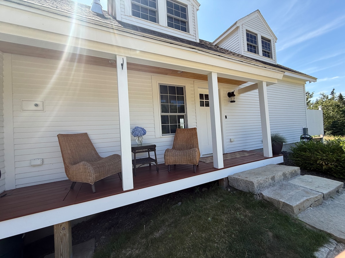 Romantic and secluded, this 2,000-sq-ft modern luxury cottage nestled on 12 private acres is a favorite of honeymooners and lovers of modern design * 1 hour to Acadia National Park & Bar Harbor; 15 min to shopping, hiking, swimming * 2 full baths, one with a steam shower * Fully equipped kitchen with Wolf stove and under-counter Sub-Zero fridge * Two gas fireplaces, one indoors, one on a covered deck * Queen bed with luxurious linens and pillows * WIFI, streaming TV, grill, bar * EV charge