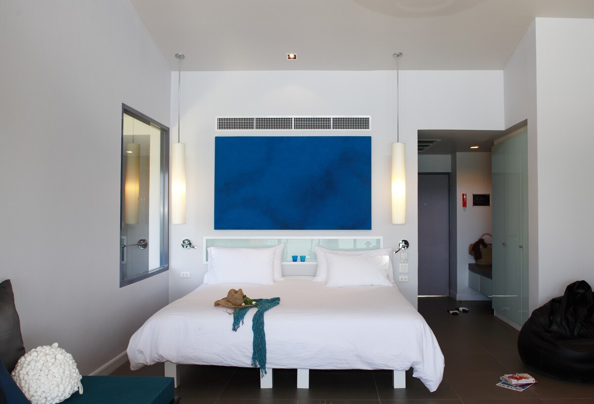 33 kv. m. Izmantojiet tempu, 1 guļamistabas bungalo, 1 "king" izmēra gultu 2 personām, daļēji atvērta privāta vannasistaba ar lietus dušu, kas atrodas tropu dārzā, privātumu atpūtai un aktivitātes baudīšanai vienlaikus. Gaisa kondicionētājs, karstais aukstais ūdens, papildērtību komplekts, ฺhalāts, fēns, ledusskapis, tējkanna, kafija, bezmaksas Wi-Fi, bezmaksas autostāvvieta Bērnu politika Mēs neiesakām 0-2 gadus vecu bērnu Papildu viesis 3-10 gadu laikā, izmantojot esošās gultas izmaksas, ir tHb 400/N, šajā istabā nevar pievienot vairāk gultu