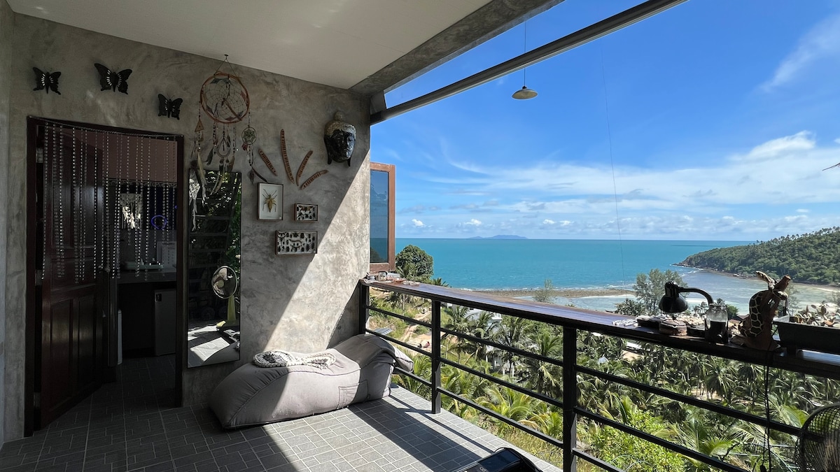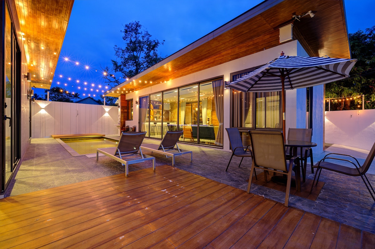 🏖️🏡Beautiful family-friendly 2.5br 🌊 beachfront villa in Chaloklum on Malibu Beach with unique design 🚫No Parties 📸 Newly built and decorated by designer 🍖BBQ zone 🌳Garden patio 🚿Outdoor shower & more