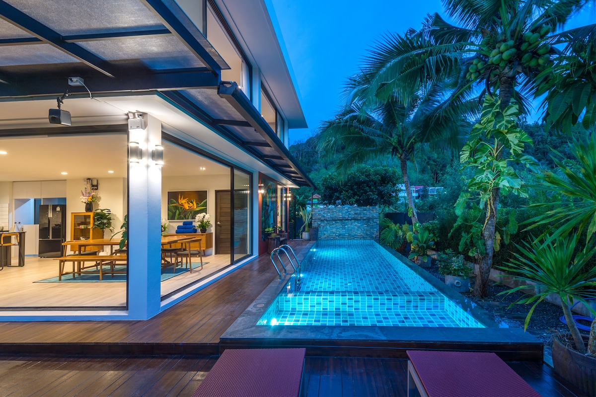 Šī ir slepena villa, kas paslēpta ielejas vidū un kuru mūsu ģimene rūpīgi projektēja un uzbūvēja. Mēs plānojam padarīt mājokli apvienotu ar dabu. Mūsu villa ir vienīgā, ko ieskauj klinšaini kalni. Jūs varat atrasties baseinā un redzēt lielo skatu uz kalniem tuvākajā apkārtnē, lai baudītu labāko atpūtas dienu. • "Privāta baseina villa Ao Nangā" • "Norobežota tropu villa netālu no Krabi pludmales" • "Ideāli piemērots ģimenēm un grupām"
