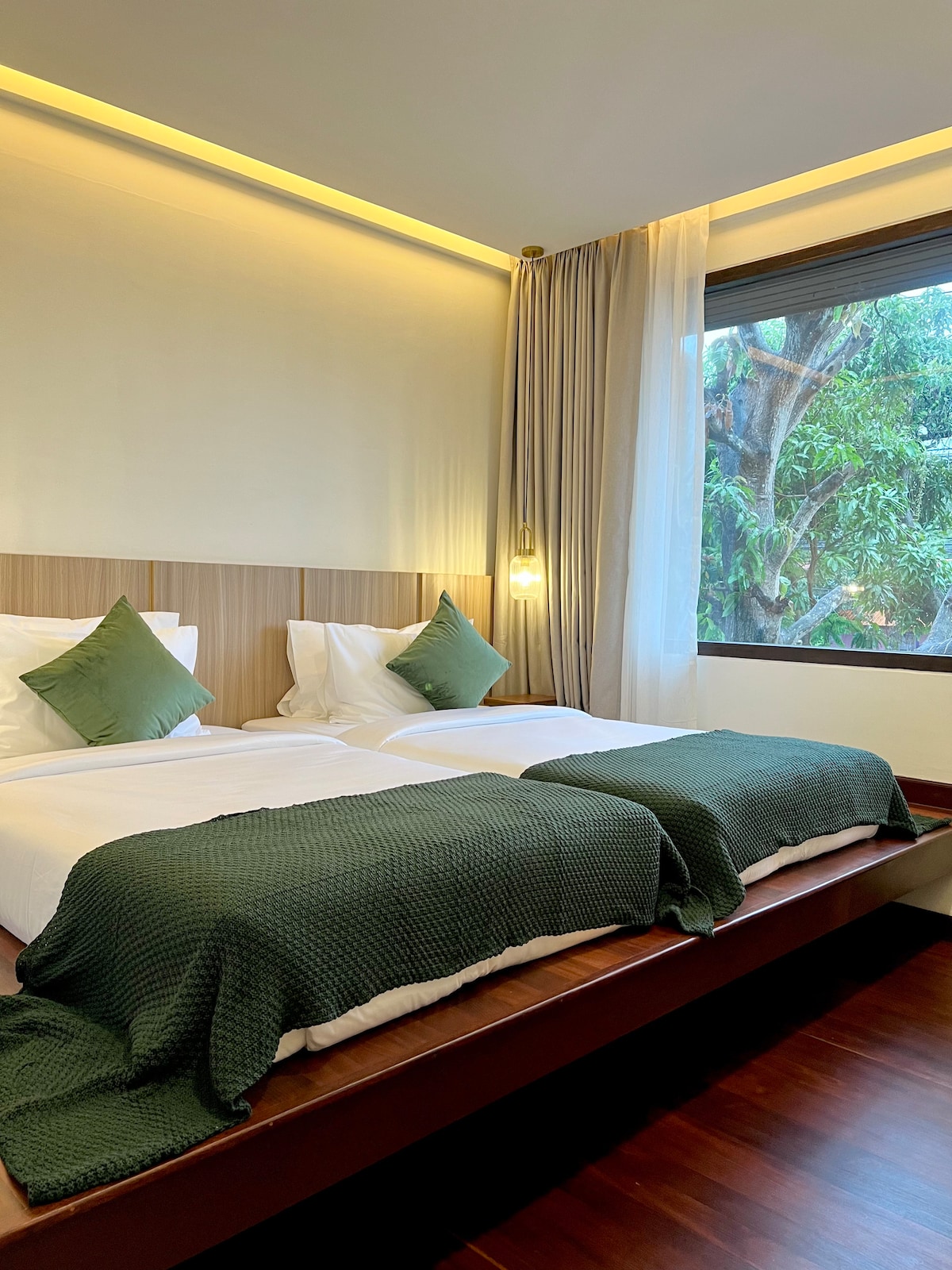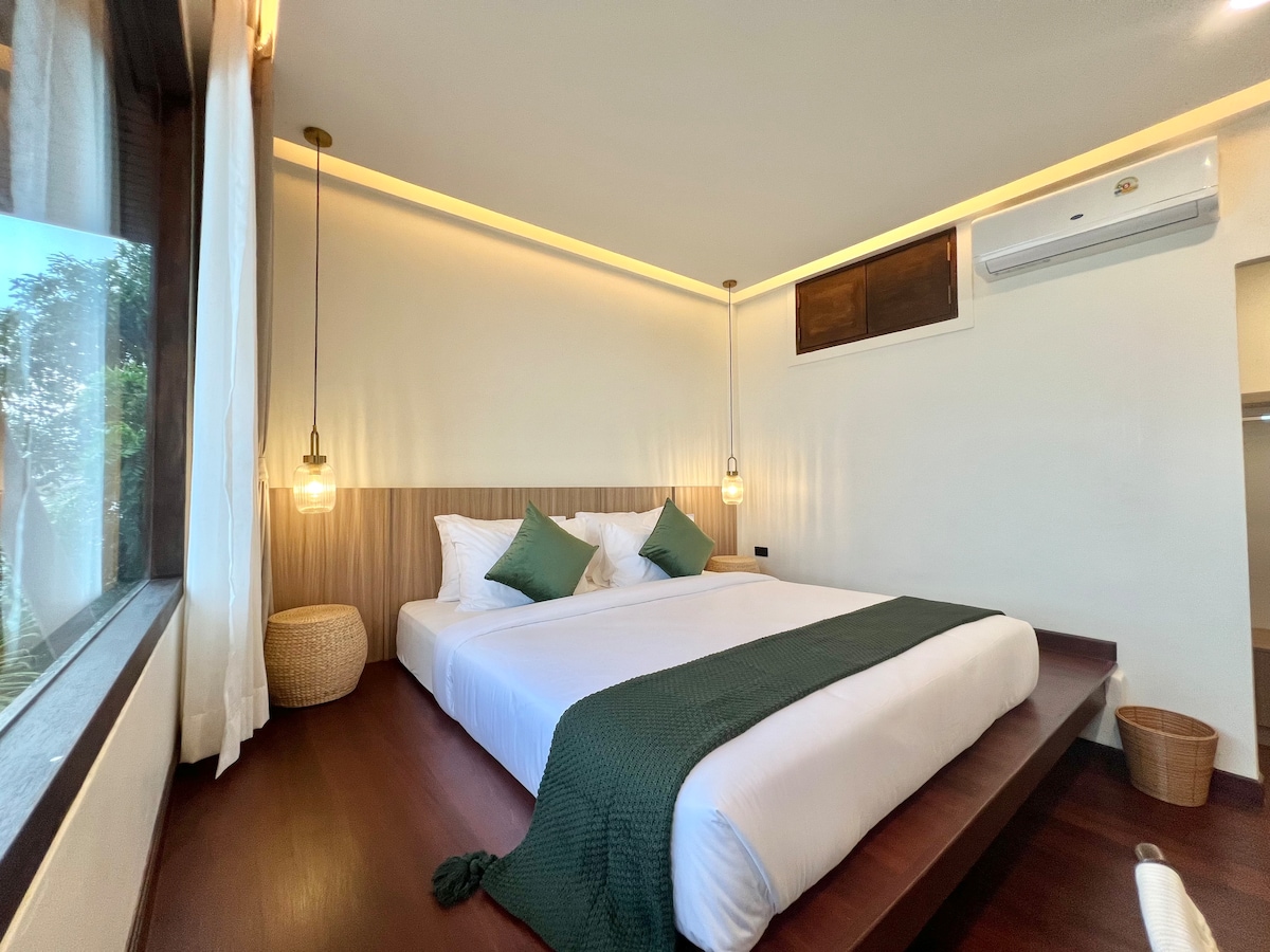 Escape to this serene 1-bedroom, 1-bathroom jungle guesthouse in the heart of Chaweng. Ideal for a peaceful getaway, this private retreat is nestled in nature while remaining close to Chaweng's beaches, Muai Thai gyms, beach clubs, shops, and restaurants. The unit features a spacious, bright, open-plan living and dining area with large windows offering views of lush greenery. Guests also have access to a shared pool and ample parking for cars or scooters.