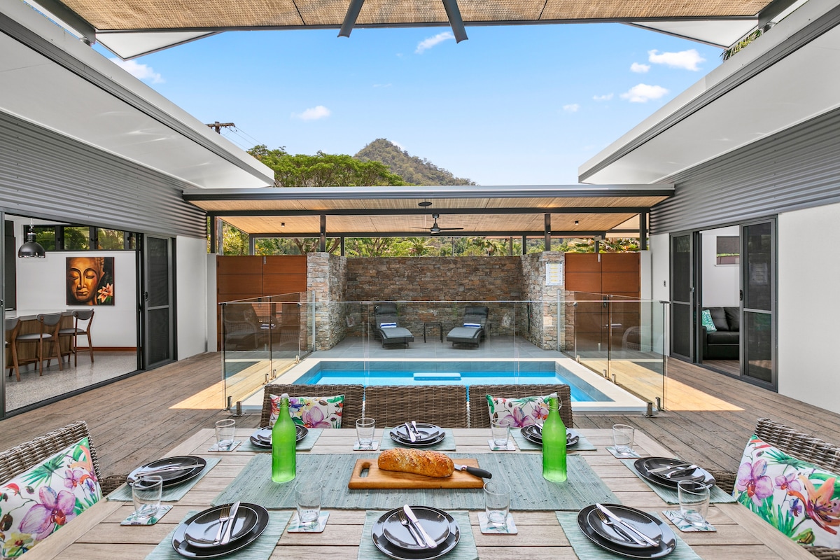 Atpūtieties nelielā paradīzē ar lielu baseinu pie jūsu namdurvīm un pludmali īsas pastaigas attālumā. Tuvu Palm Cove un 30 minūšu brauciena attālumā no pilsētas. Mūsu tropu dārzā pludmales tematiskajā viesu namā ir visas mājas ērtības. Plašas, ar gaisa kondicionētāju, virtuvi, grilu un baseina mēbelēm. Bezmaksas Wi-Fi + Netflix. Mūsu māja atrodas pāri dārzam. Tāpēc varat saņemt vietējos padomus vai jebko, kas jums varētu būt nepieciešams. Nāciet un palieciet, mēs labprāt dalīsimies ar jums savā nelielajā paradīzē!