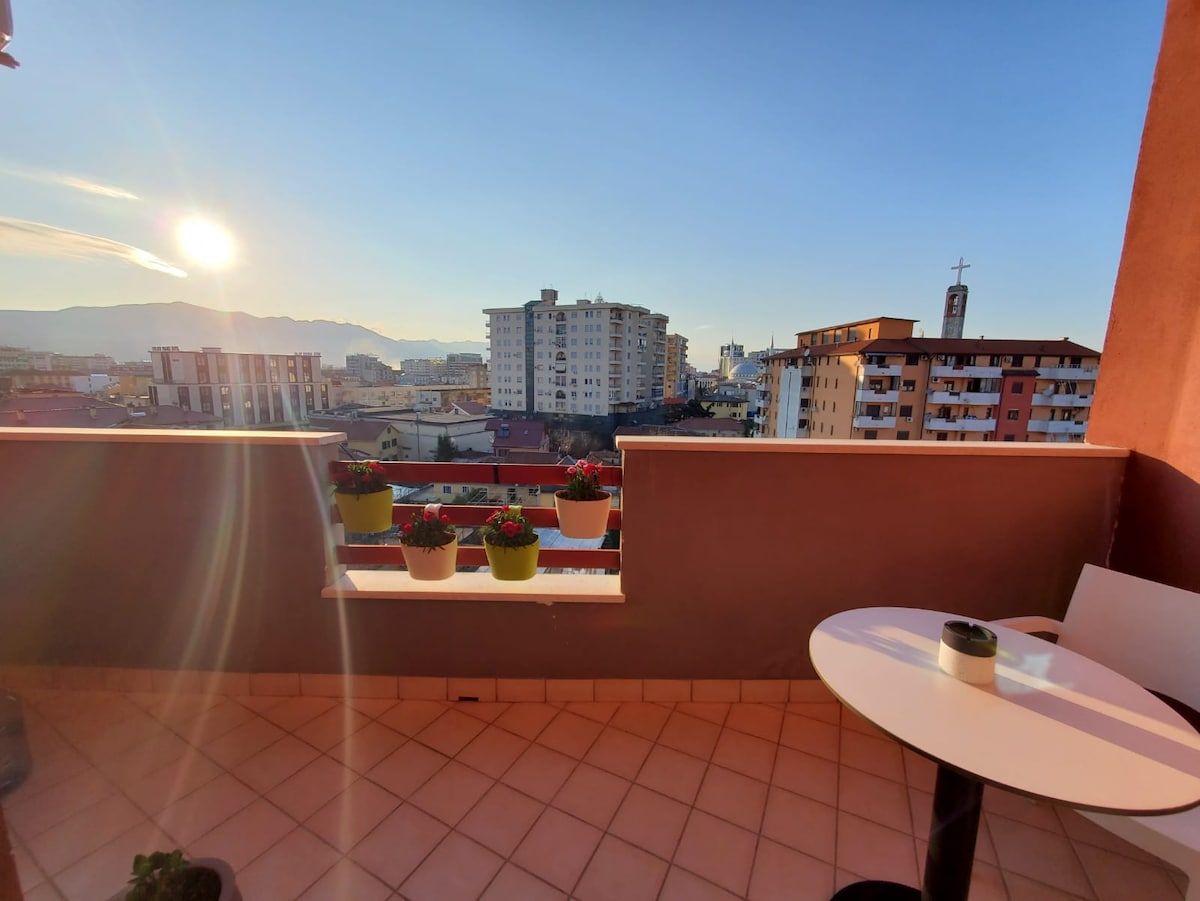 - Liels dzīvoklis ar balkonu 180 grādu skatu uz Škodras pilsētas centru vienā no jaunākajām ēkām valstī. - Dzīvoklis sastāv no lielas, gaišas dzīvojamās platības ar minivirtuvi un piekļuvi āra kontaktligzdai, 1 lielas vannasistabas un 2 ērtām guļamistabām. - Ērta atrašanās vieta, īsas pastaigas attālumā no pilsētas centra un autobusu un taksometru stacijas, blakus Migjeni teātrim. - Māja nesen ir atjaunota ar mājīgiem dekoriem.
