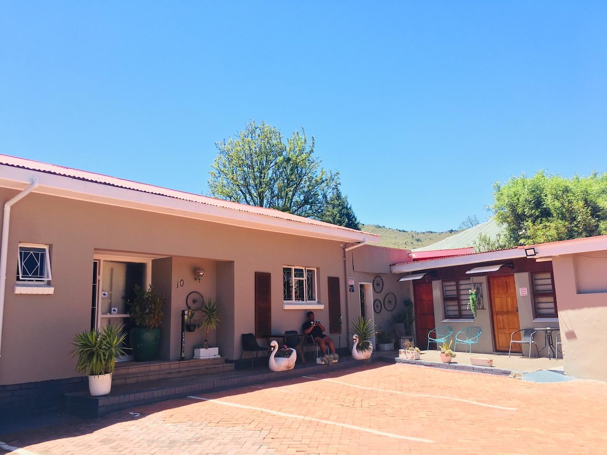 Laipni lūdzam mūsu burvīgajā 1 guļamistabas Rondavelā, kas atrodas netālu no Komani gleznainā lauku saimniecībā! Aizbēdziet no pilsētas burzmas un izbaudiet lauku dzīves mieru, vienlaikus atrodoties tikai 10 minūšu attālumā no visām galvenās pilsētas ērtībām.