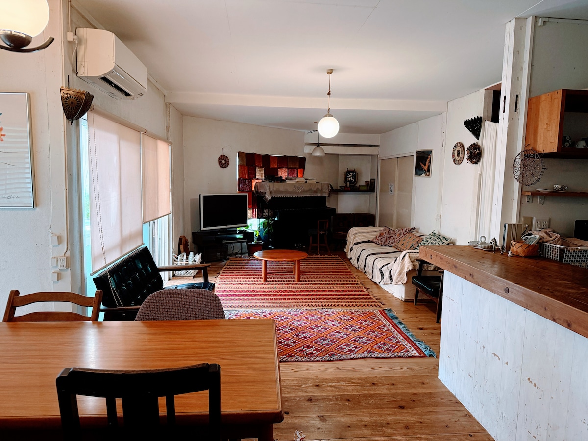 Mēs izīrējām visu mājokli, lai jūs varētu bez vilcināšanās atpūsties 2DK privāts īres veids, kas var uzņemt līdz 5 personām. Norādītā cena par nakti ir paredzēta vienam viesim. Turklāt tiks parādīta kopējā cena, ieskaitot papildu nodevas (no otrā viesa, 4500 jenu par nakti par personu, pārvaldības nodevas), Airbnb pakalpojumu nodevas, nodokļus utt. Mēs paši nosakām bērnu cenas, lai atbalstītu ģimenes ar maziem bērniem. * 0, 1, 2, 3 gadi (bez futona: bez maksas) Ja vēlaties izmantot mazuļu futonu (bez maksas), mēs to nodrošināsim. * No bērniem no 4 gadu vecuma līdz 12 gadu vecumam tiek piemērota bērnu likme (50% no papildu personas cenas) * Cenas pieaugušajiem tiek piemērotas viesiem no 12 gadu vecuma Jūs varat atpūsties japāņu stila istabā ar tatami paklājiem, siltu koka virtuvi un mierīgu un mājīgu telpu. Ideāli piemērots nelielām grupām un ģimenes ceļojumiem. Ja jums ir kādas problēmas ar apskates objektiem, mēs varam to izskatīt arī tādā mērā, cik zinām, tāpēc droši jautājiet. Aptuveni 10 minūšu gājiena attālumā līdz Yosakoi festivāla Uenotsuji norises vietai 32 minūtes kājām līdz Otsuji Motobu stadionam 9 minūtes ar automašīnu J3 Kochi United Homes spēle 15 minūšu brauciena attālumā no futbola spēles Kochi Haruno General Sports Park Track and Field stadiona Katsurahama 21 minūte ar automašīnu Koči pils atrodas 8 minūšu brauciena attālumā un 39 minūšu pastaigas attālumā
