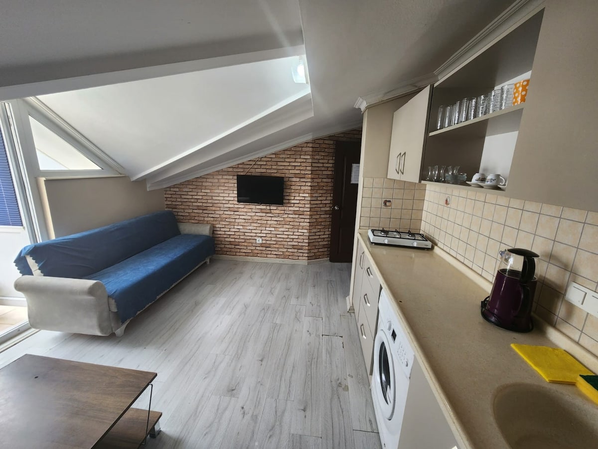Mūsu lofta studijas tipa dzīvoklis pirmajā stāvā atrodas netālu no Konyaaltı pilsētas laukuma, pludmales, kafejnīcām, restorāniem un tirgiem. Jūs varat viegli piekļūt pilsētai un lidostai no stacijas, kas atrodas tieši uz ziemeļiem. Vienlaikus varat reģistrēties, pateicoties šifrētajai kastītei Jums būs patīkams atvaļinājums.