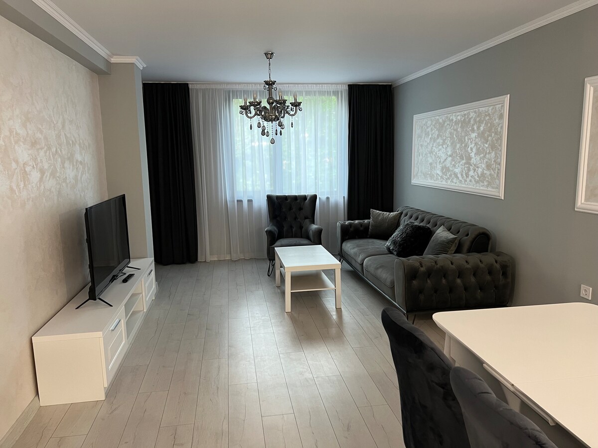 Добре дошли във Вашето чисто ново, луксозно място в Сърцето на Стара Загора. Разположен на чудесна локация, в централната част на града, на тиха улица в чисто нова бутикова сграда. Обзаведен с много заряд за положителни емоции, в еклектичен стил от минимализъм и лукс, вярваме, че ще покрие критериите Ви за търсен престой в града на Липите. Апартамента разполага със собствено паркомясто, точно под терасата на апартамента, което е безплатно за гостите. NETFLIX, HBO and Cinemax, Diema EXtra