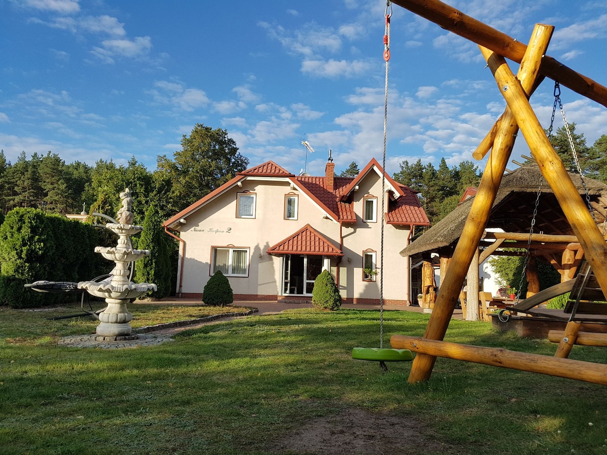 Wyjątkowe, karmiące zmysły miejsce wyciszenia i relaksu. Oaza gościnności i wewnętrznej harmonii. Przestronny dom, w którym Ty i Twoi bliscy znajdą miejsce dla siebie. Zielony, naturalny ogród. Nie przycinamy trawki pod linijkę, bo pszczółki też mają u nas ważne miejsce. Dom znajduje się w otoczeniu łąk i lasów Borów Tucholskich na terenie obszaru Natura 2000.