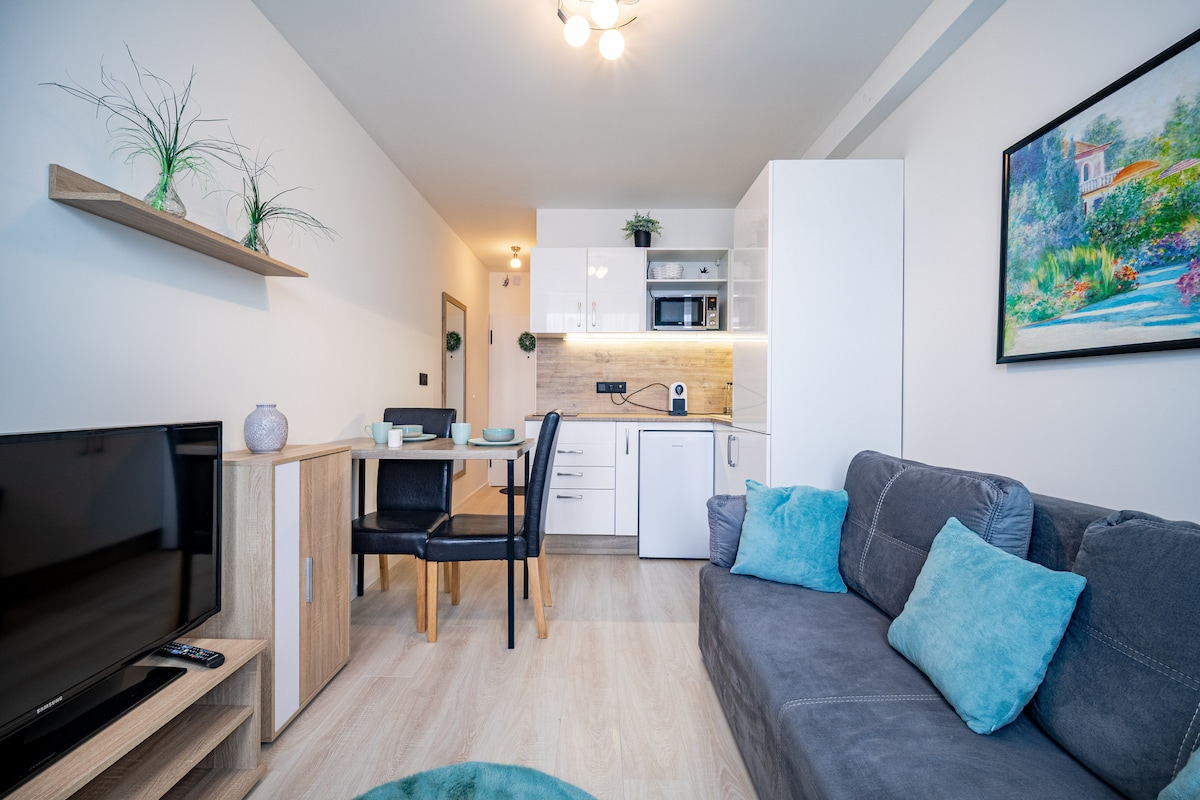 Mūsdienīga dzīvošana 2 guļamistabu dzīvoklī, kas atrodas jaunuzceltā dzīvojamā ēkā ar privātu autostāvvietu. Jūs uzturēsieties patiesi ienesīgā un unikālā Košices daļā, ko sauc par Panoráma, jaunu, mierīgu un klusu pilsētas rajonu, prom no visiem trokšņiem un ceļiem. Tikai 3 minūšu attālumā no pilsētas centra. Tuvumā atrodas jauns tirdzniecības centrs, restorāni un daudz kas cits. Naktsmītne ir aprīkota ar jaunām mēbelēm, aprīkojumu un apsildāmu grīdu.