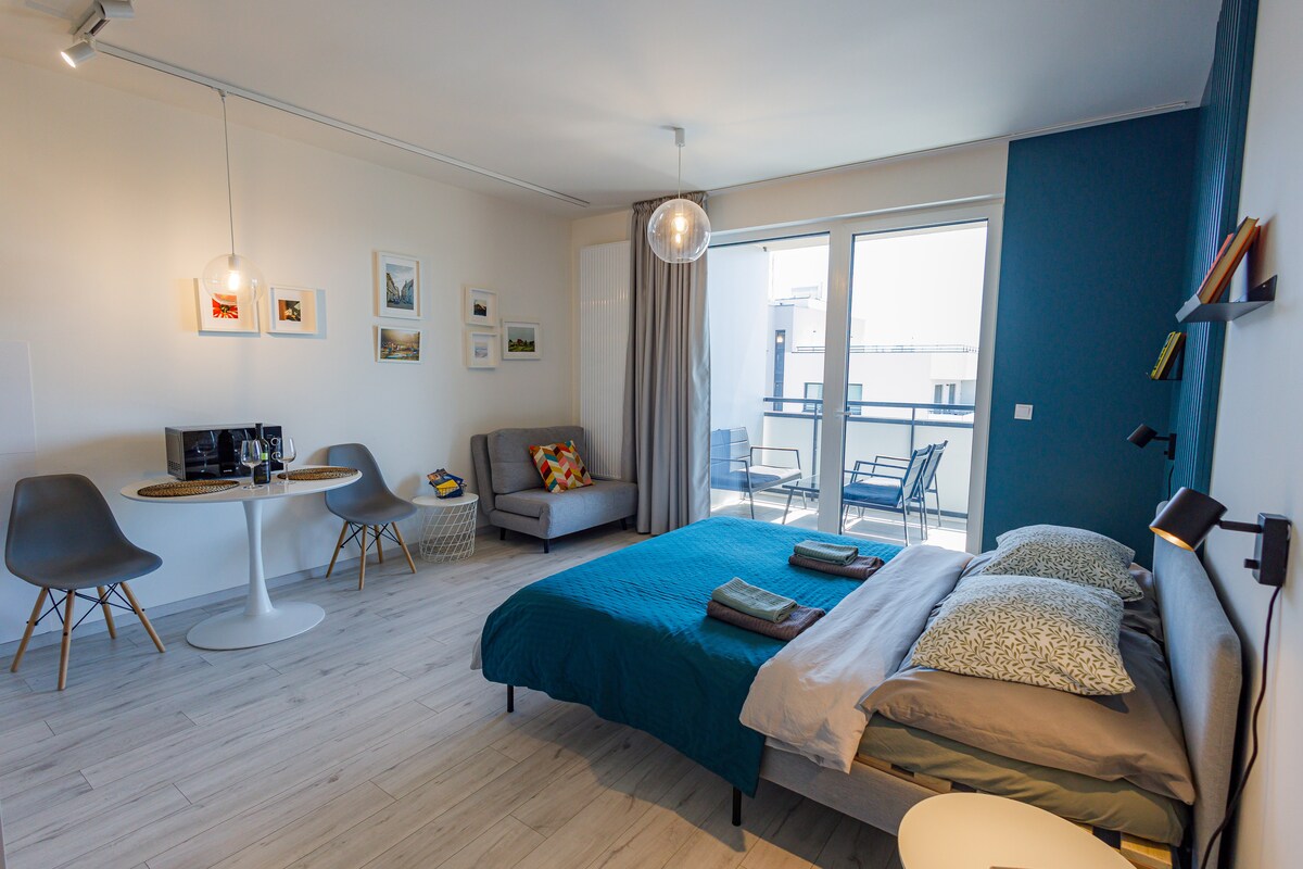 Pavisam jauns dzīvoklis modernā jaunā ēkā netālu no pilsētas centra ar skaistu skatu un labām pilsoniskām papildērtībām. Blakus dzīvoklim atrodas pārtikas veikali, slimnīca, aptieka vai sabiedriskā transporta pieturas. Mums ir arī daži padomi par to, kur baudīt labu ēdienu, kurp doties pārgājienā vai ceļojumā. Pilsētas centrs atrodas 10 minūšu gājiena attālumā. Jūs varat baudīt skaisto atmosfēru, ko sniedz skats no 7. stāva, sēžot uz terases. Bezmaksas āra autostāvvieta atrodas dažu minūšu attālumā no dzīvokļa.