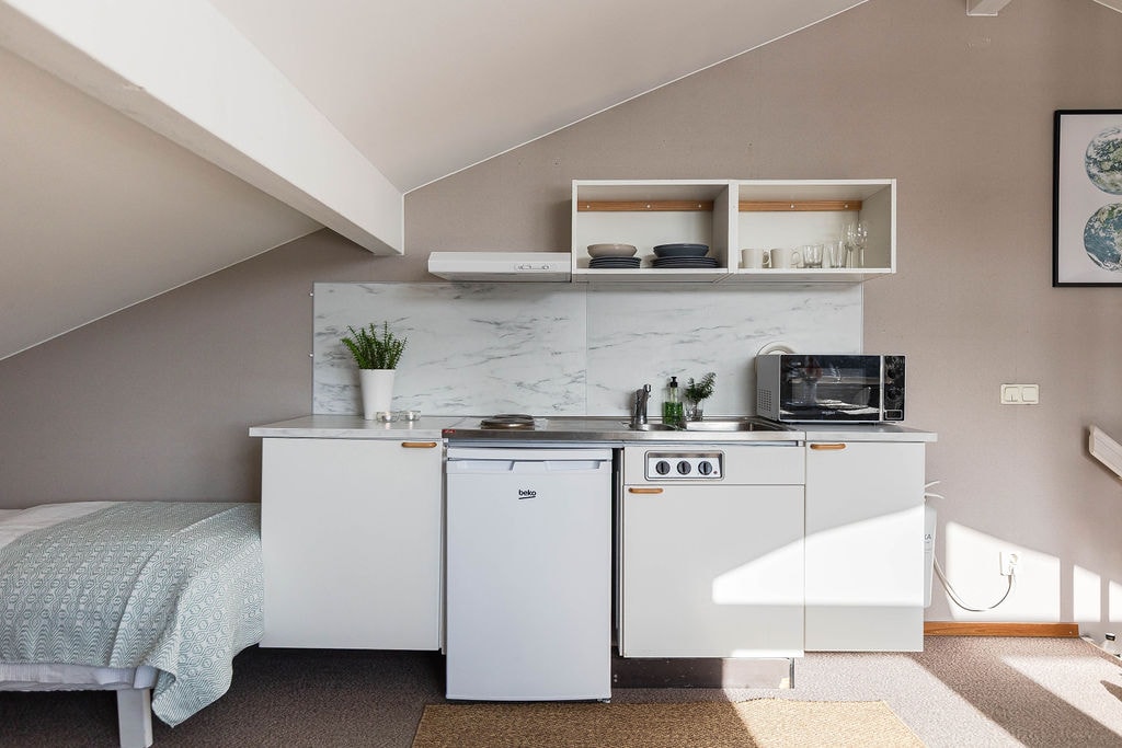 Dzīvoklis klusā privātmāju rajonā, Sundsvalles centrā, ar privātu terasi un autostāvvietu. Ērta satiksme ar autobusiem un vilcieniem. Atvērta plānojuma dzīvoklis ar ērtu divguļamo gultu un labu dīvāngultu 1-2 papildu guļvietām (gultas veļa un dvieļi iekļauti). Atsevišķa tualete un duša, kā arī veļasmašīna ar iebūvētu žāvētāju. Pilnībā aprīkota virtuve ar ledusskapi, saldētavu, plīti, cepeškrāsni, kafijas automātu, tējkannu un mikroviļņu krāsni. Lieliski piemērots 1-3 pieaugušajiem vai 2 pieaugušajiem un 2 bērniem. Ir pieejams televizors ar ChromeCast.