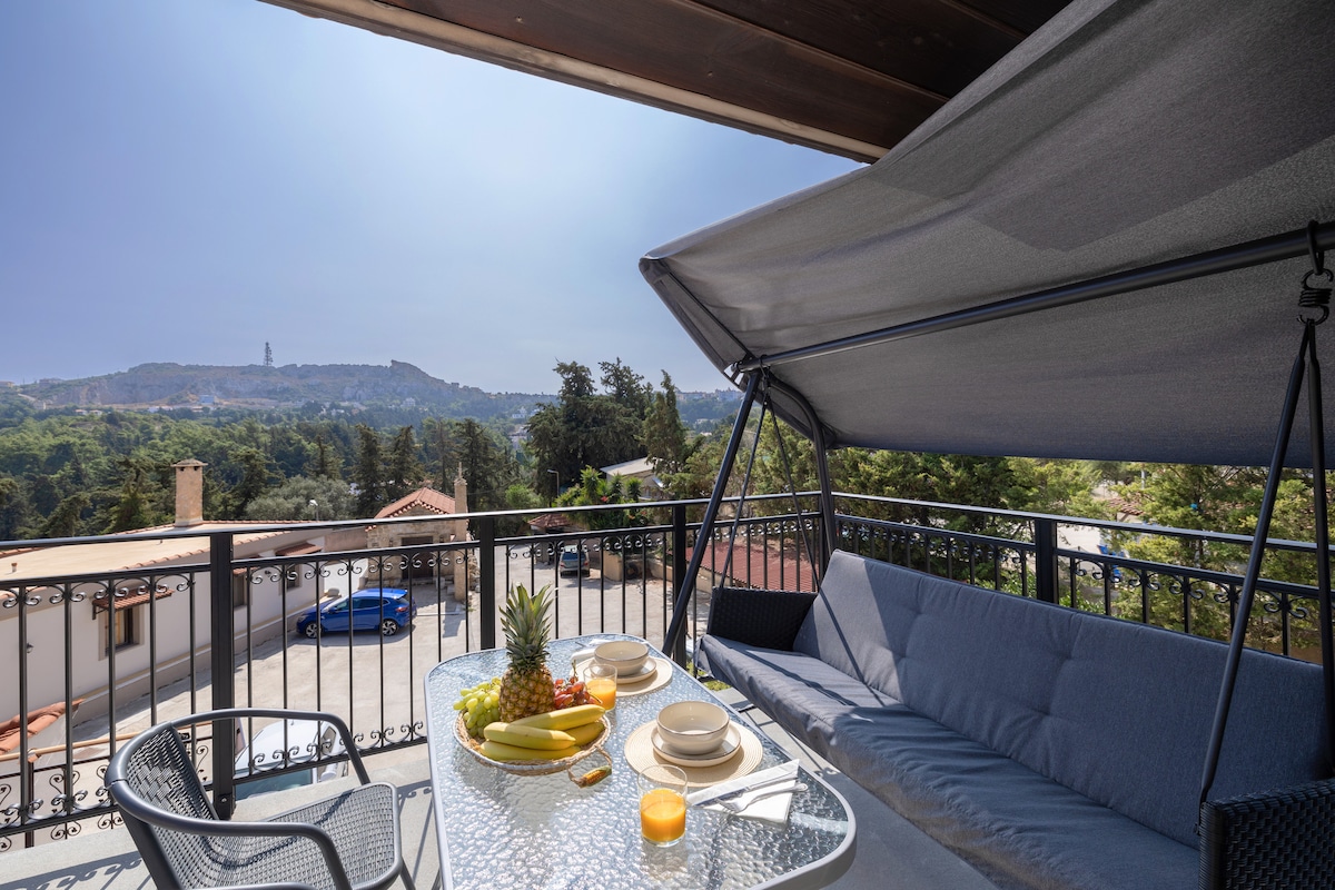 The Athena apartment (80sq.m) has 1 master bedroom, 1 smaller one and can accommodate comfortably up to 6 persons, fully equipped to meet your needs, with ample space and privacy. Furthermore it offers a cozy living and dining area alongside with an amazing view over the brand new swimming pool and Filerimos. **THE SWIMMING POOL IS BRAND NEW AND WILL START OPERATING FROM 1st OF MAY 2022. MOREOVER WE ARE EXTREMELY HAPPY TO ANNOUNCE THAT THE NEW GYM IS READY AND FREE TO USE FOR ALL OF OUR GUESTS.
