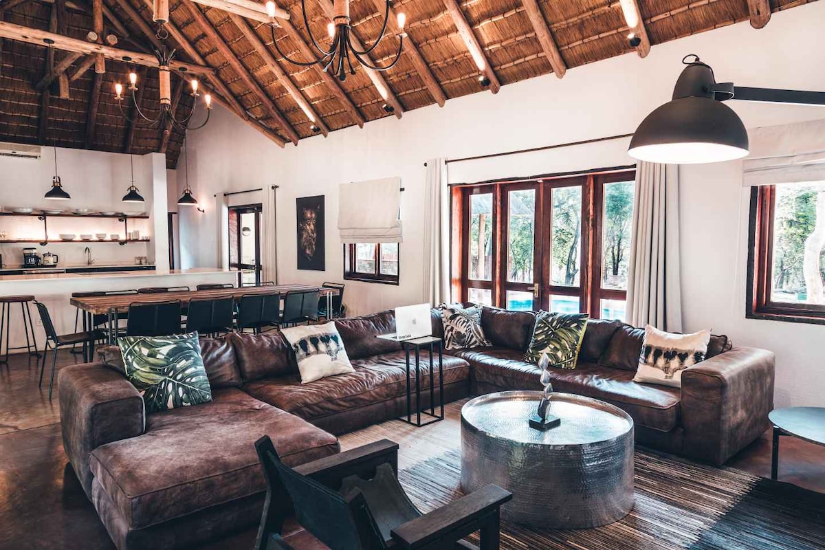 Atrodas vienā no 10 labākajiem savvaļas dzīvnieku īpašumiem Dienvidāfrikā, netālu no Lielā 5 Kruger nacionālā parka un KMI lidostas. Šī atvērtā plānotā, greznā un plašā 4 guļamistabu, 4,5 vienistabas vannasistabas māja ir ideāli piemērota ģimenēm. Izbaudiet kokteili blakus peldbaseinam vai atpūtieties burbuļvannā ar apbrīnojamu skatu uz krūmiem un savvaļas dzīvniekiem. Māja sastāv no bomas, iekšpusē braai un mājīga kamīna šajās aukstajās ziemas dienās. No katras istabas paveras lielisks skats uz krūmu.