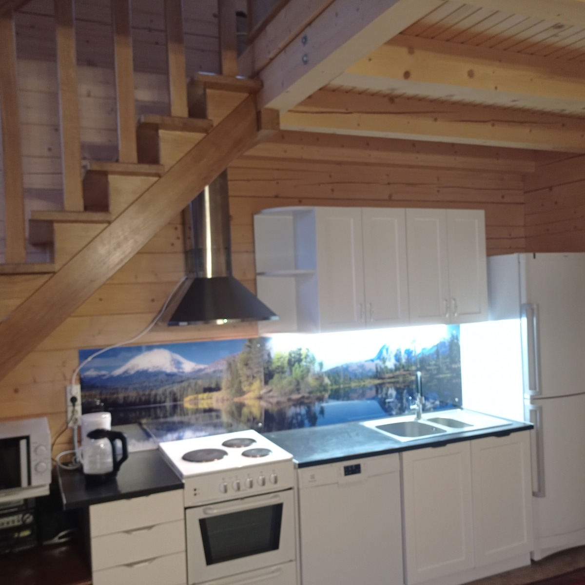 Jauna kotedža, kas celta 2024. gadā. Tikai 15-20 minūšu gājiena attālumā no pilsētas centra. Tuvumā atrodas lielveikals, jauna pasta nodaļa, cisternas, visurgājēji un muzeji! Restorāni, ekskursijas, tirgus un autoosta ir viegli sasniedzami. Divguļamā gulta un izvelkams dīvāns. Kafijas automāts jūsu rīta jautrajam noskaņojumam. Kamīns mājīgiem vakariem. Veļas mašīna ar žāvētāju ērtībai. Liela, plaša terase atpūtai. Kvalitatīvs Wi-Fi savienojums darbojas pat bez elektrības.