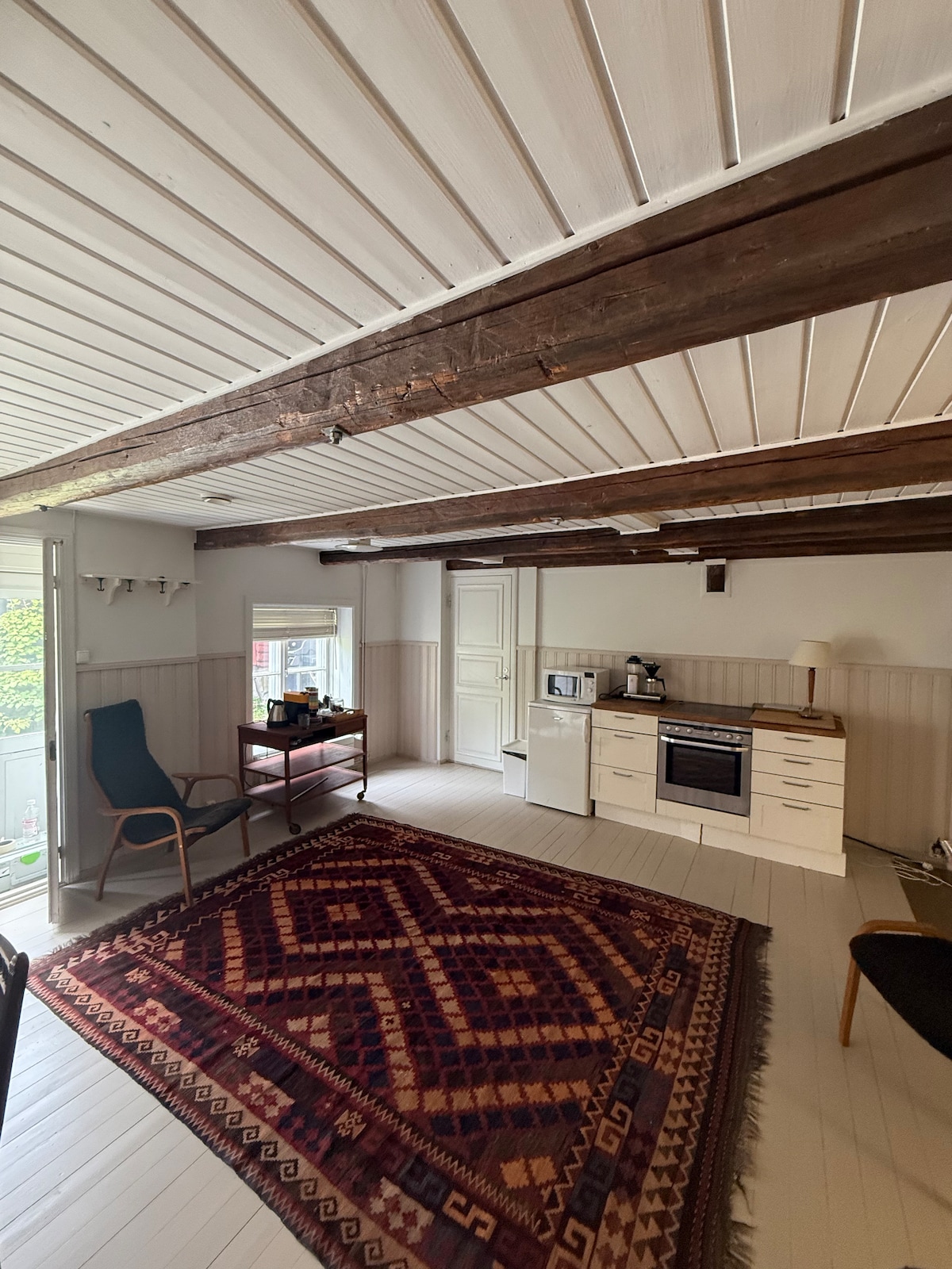 Tämä pieni erillisasunto sijaitsee Järvenpään kulttuurihistoriallisella alueella erillisessä piharakennuksessa varsinaisen päärakennuksen vieressä. Pieni kotoisa piharakennus majoittaa 1-2 henkeä ja se käsittää pienen n. 13 m2 makuutuvan keittiönurkkauksella, omalla puusaunalla, pesutilat ja wc. Omatoiminen sisäänpääsy. Autopaikka. Sijainti lähellä Sibeliuksen kotia Ainolaa. Järvenpään keskusta 1,5 km. Luontomaisema ja järvi lähellä. Junalla Helsingistä 30 min. Poreallas lisämaksusta.