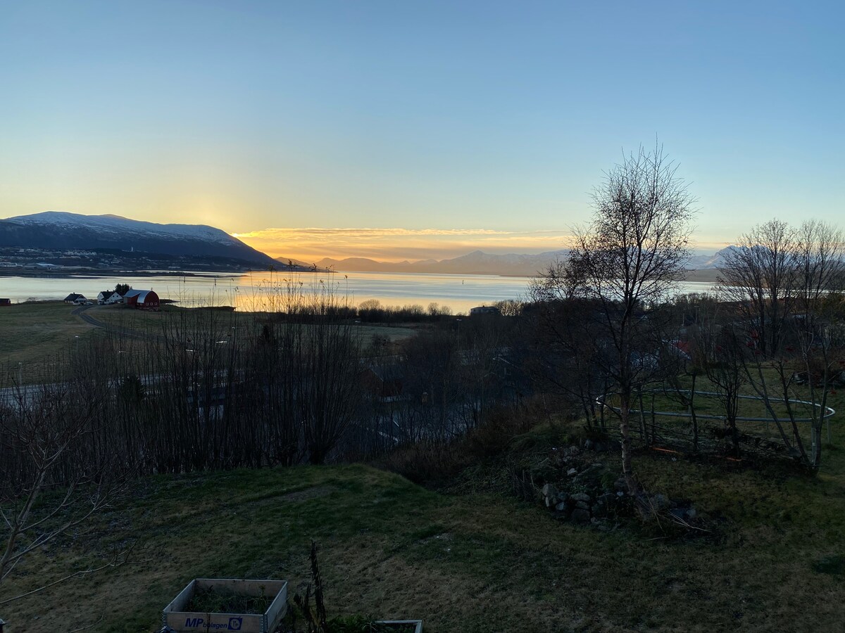 Šeit jūs dzīvojat tuvu pilsētai un dabai tuvu, mierīgā apkaimē ar jauku skatu uz jūru un kalniem. Piekļuve privātam dārzam, kur varat baudīt ziemeļblāzmu. 5-10 minūšu gājiena attālumā atrodas: jaukas dabas teritorijas ar takām un slēpošanas trasēm, iekštelpu kāpšanas zāle, ūdens parks, pārtikas veikals, UiT un botāniskais dārzs. Pilsētas centrs atrodas īsa autobusa brauciena attālumā (7 minūšu attālumā).