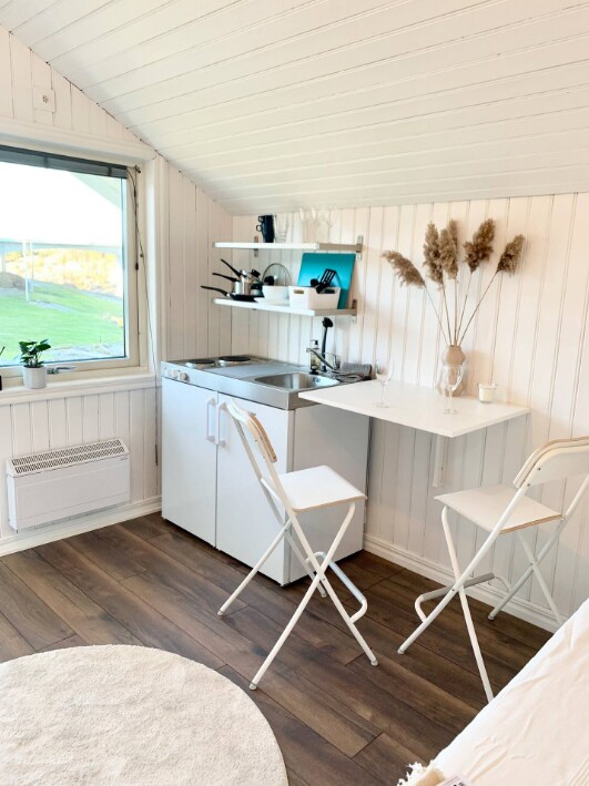 No šīs atsevišķās kotedžas paveras skats uz jūru nošķirtā, skaistā lauku vidē, vēl tikai 5 minūšu attālumā no E6 automaģistrāles. Nesen tas ir pilnībā atjaunots, saglabājot veco stilu. Pirmajā stāvā dzīvojamā istaba ar mājīgu kamīnu (gludekļa plīts), vannas istaba ar tualeti, dušu un apsildāmo grīdu, neliela, bet pilnībā aprīkota virtuve un ēdamistaba ar durvīm uz terasi. Otrajā stāvā ir atvērts lofts ar ierobežotu augstumu, kas darbojas kā guļamistaba ar 4 gultām kopā.
