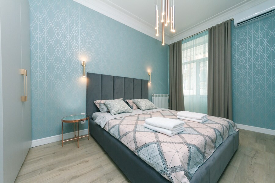 Stilīgs dzīvoklis 30. stāvā pilsētas centrā, jaunā darījumu klases dzīvojamajā kompleksā. Panorāmas skats, dizaineru renovācija, pilns aprīkojums: televizors, mikroviļņu krāsns, ledusskapis, trauku mazgājamā mašīna un veļas mašīna, gaisa kondicionētāji, ortopēdiskais matracis. Slēgts pagalms uz stilba ar bērnu un sporta laukumu. Netālu atrodas iepirkšanās centri, restorāni, kafejnīcas, tirgi, aptiekas. Ērta transporta apmaiņa. Ideāli piemērots viesiem, kuri novērtē komfortu, estētiku un atrašanās vietu.