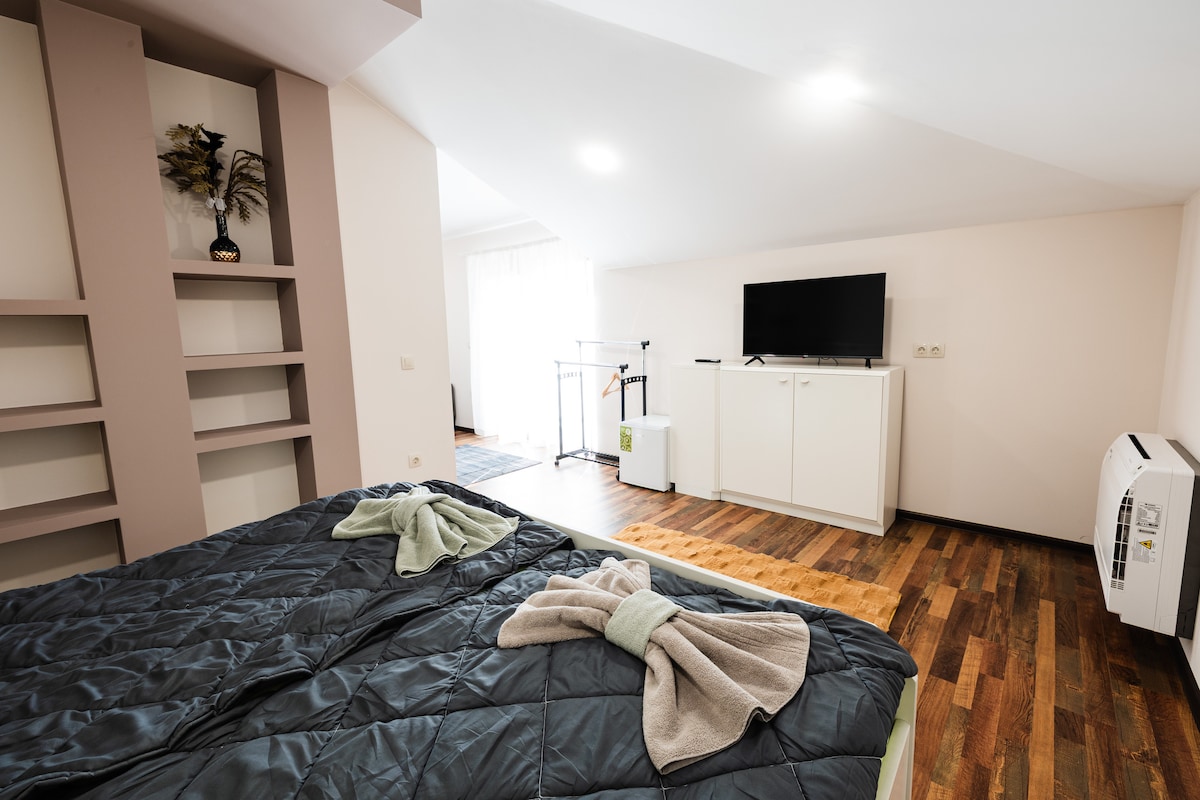 Jūs apmetīsieties manā elegantajā 3 guļamistabu mājoklī Maksi kompleksā, kur es pats dzīvoju, atrodoties Bulgārijā. Atpūtieties gaišās telpās ar sulīgiem skatiem, ortopēdiskām gultām, burbuļvannu, viedtelevīziju un maiņstrāvu. Gatavojiet ēdienu elegantā virtuvē, vakariņojiet, atpūtieties un jūtieties kā mājās. Viss ir sagatavots komfortam un kvalitātei. Rezervējiet savu neaizmirstamo mājokli tūlīt!