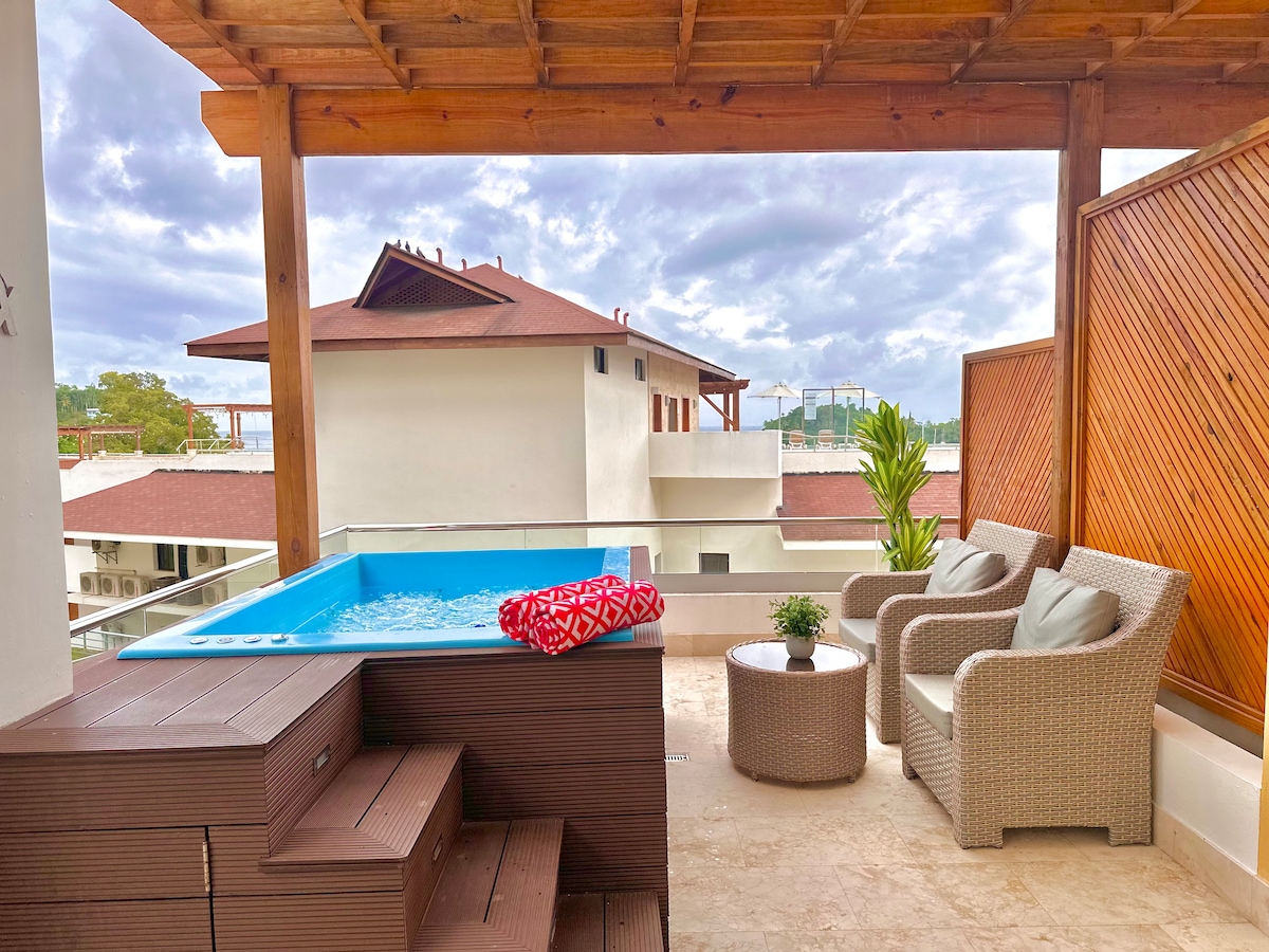Imagine a luxurious apartment atop a building on the coast of the beautiful Samaná Bay in the Dominican Republic. Offering unparalleled panoramic views of the shimmering turquoise sea and the lush mountains surrounding the bay.